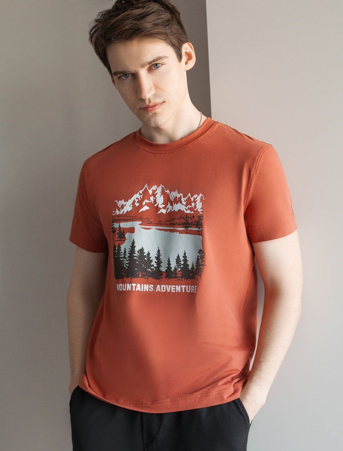 Ст.цена 1190р Футболка из премиального хлопка с авторским принтом U49.045 кирпичный_mountains adventure