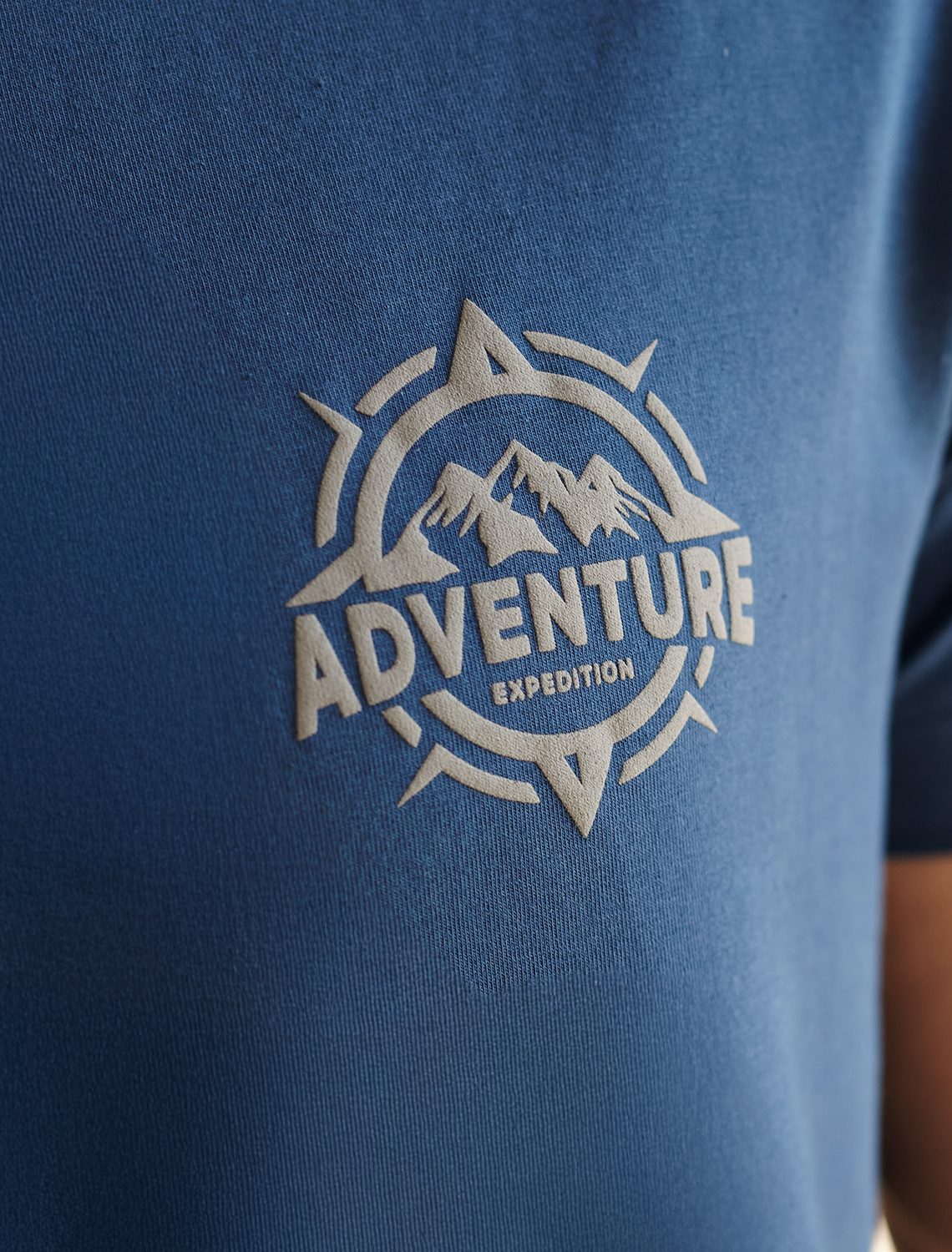 Ст.цена 1190р Футболка из премиального хлопка с авторским принтом U49.045 т.синий_adventure