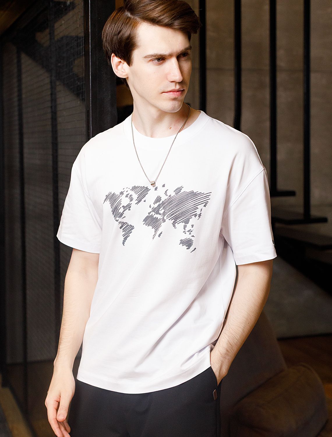 Ст.цена 1190р Свободная футболка с авторским принтом U49.048 белый_карта