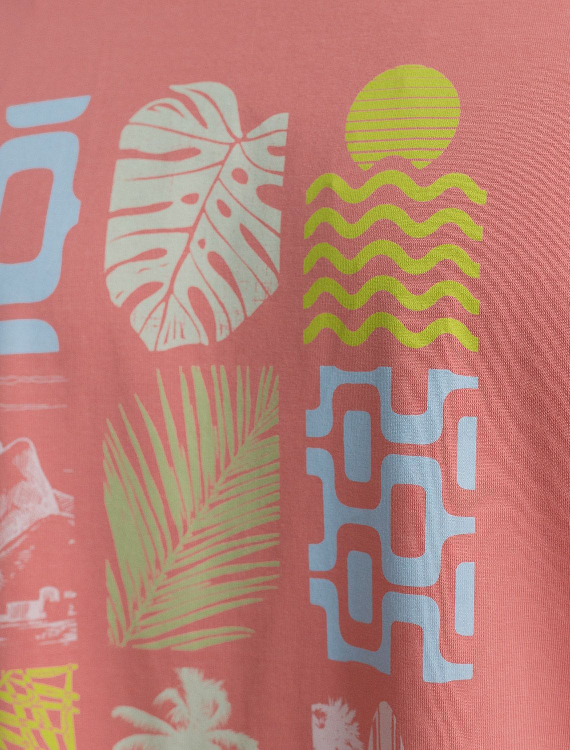 Ст.цена 1190р Свободная футболка с авторским принтом U49.048 коралловый_ready for paradise
