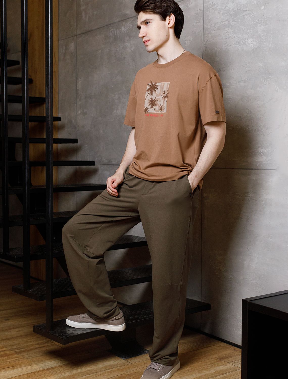 Ст.цена 1190р Свободная футболка с авторским принтом U49.048 коричневый_just