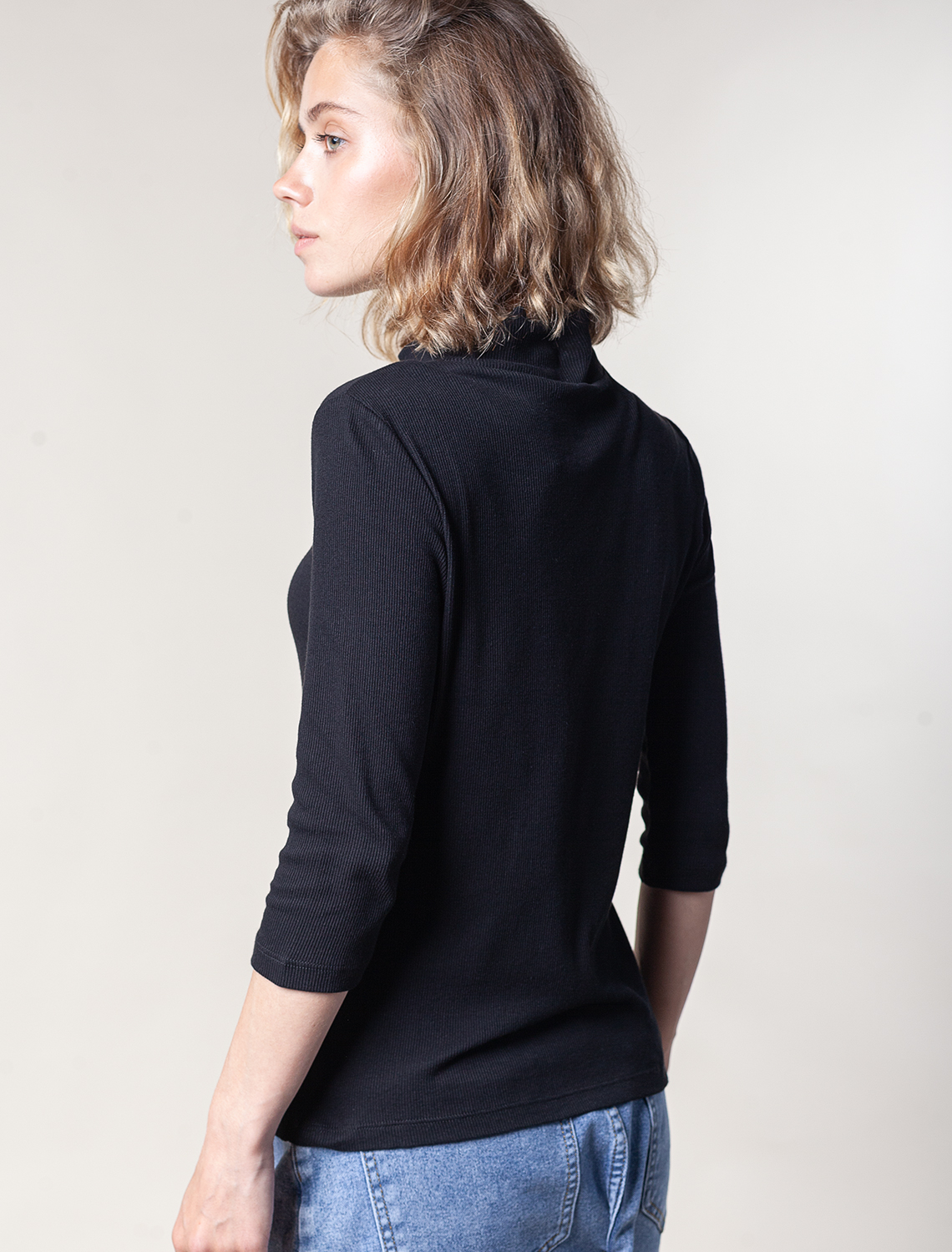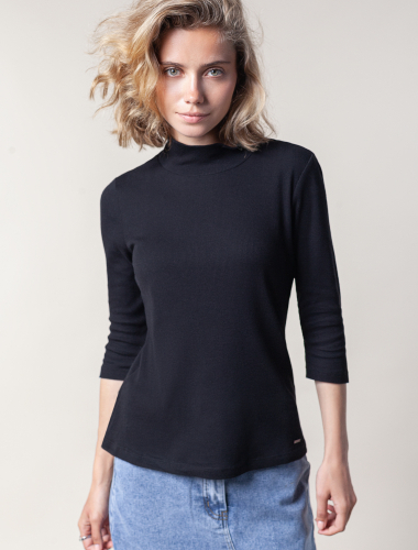 Ст.цена 1190р Водолазка из тонкого премиального трикотажа в рубчик D49.937 черный