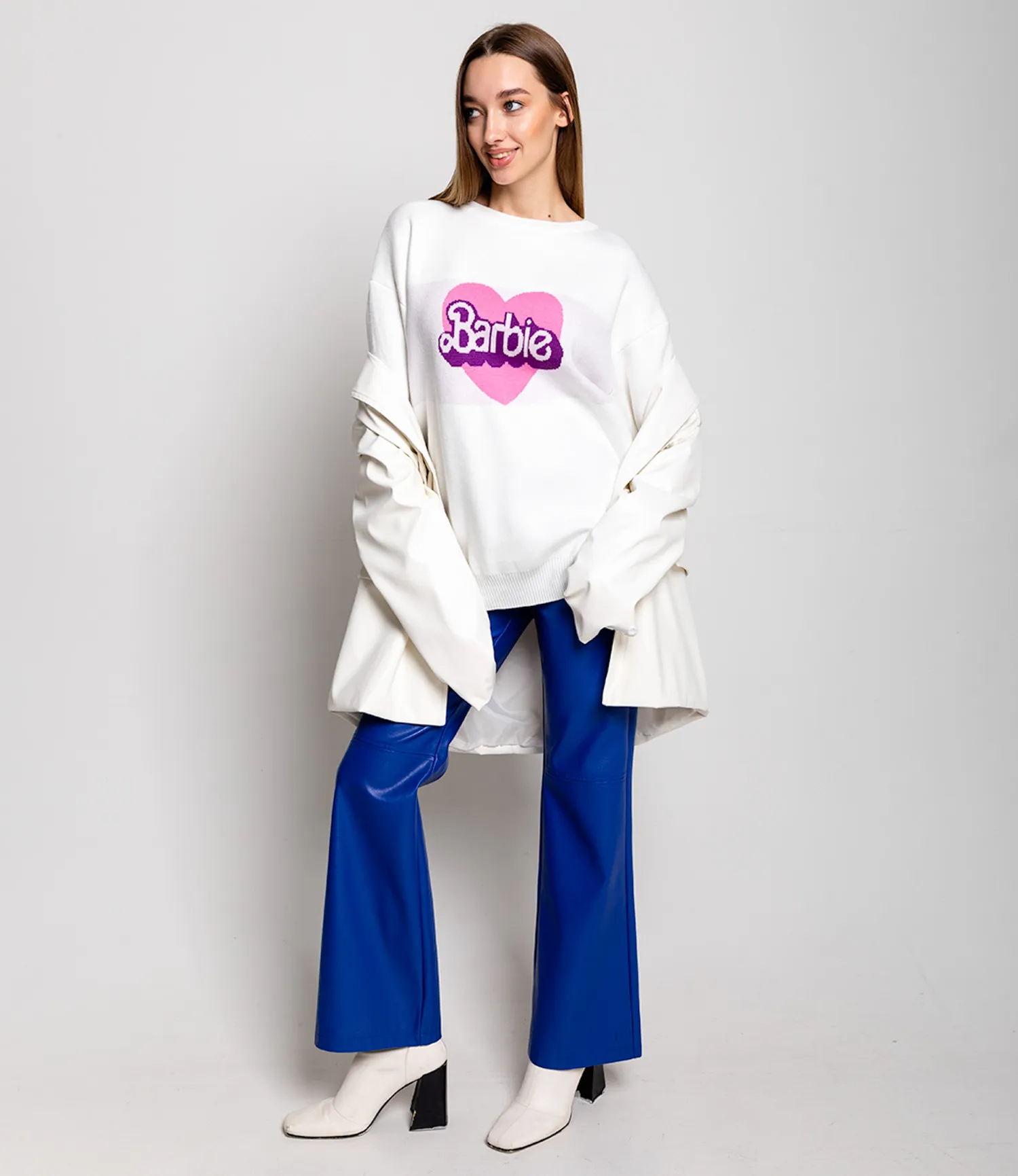 Удлиненный джемпер из плотной ткани с трендовой надписью.