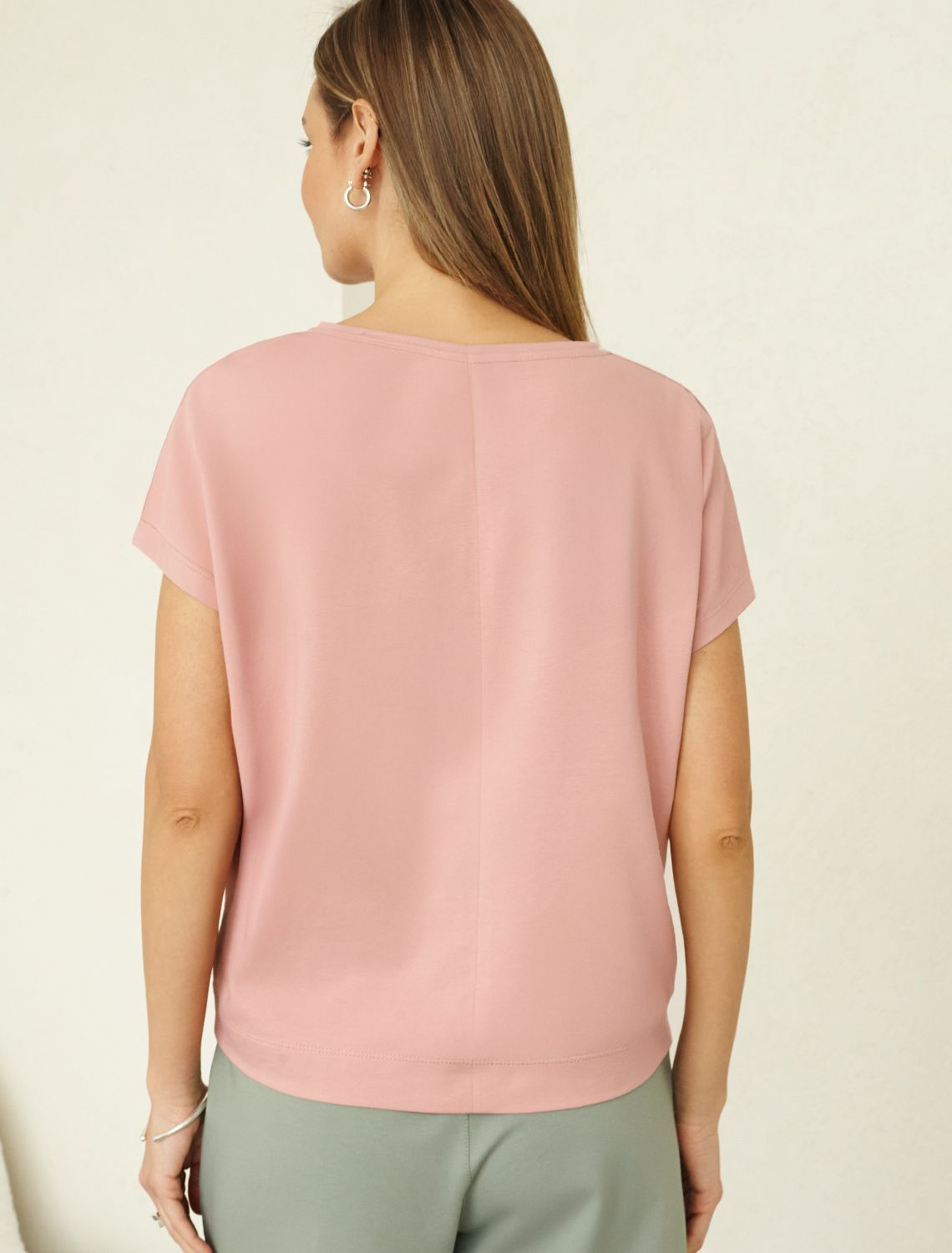 Ст.цена 1290р Футболка с V-вырезом и цельнокроеным рукавом из премиального хлопка D49.100 пудра