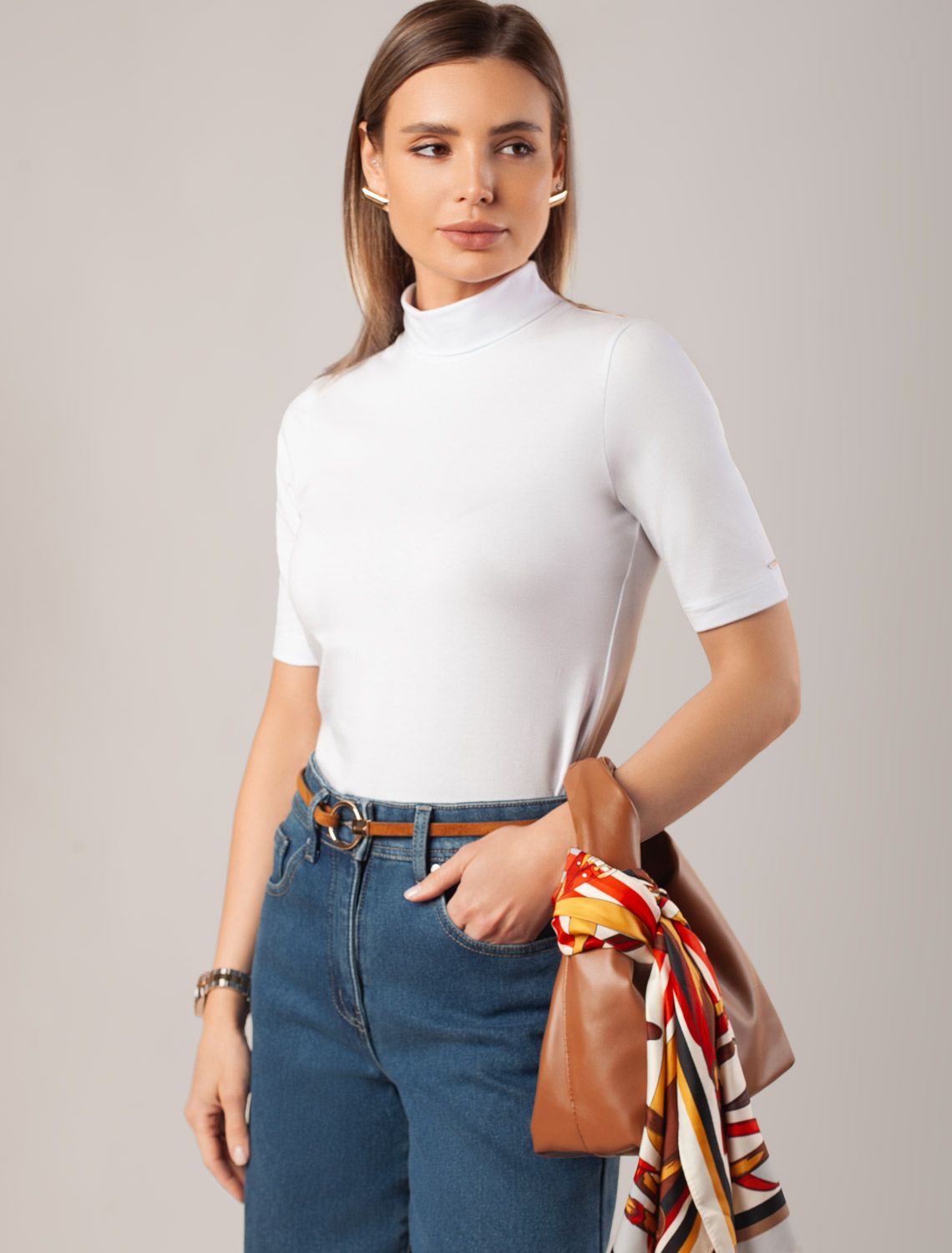 Ст.цена 1250р Водолазка из премиального хлопка с эластаном D49.114 белый