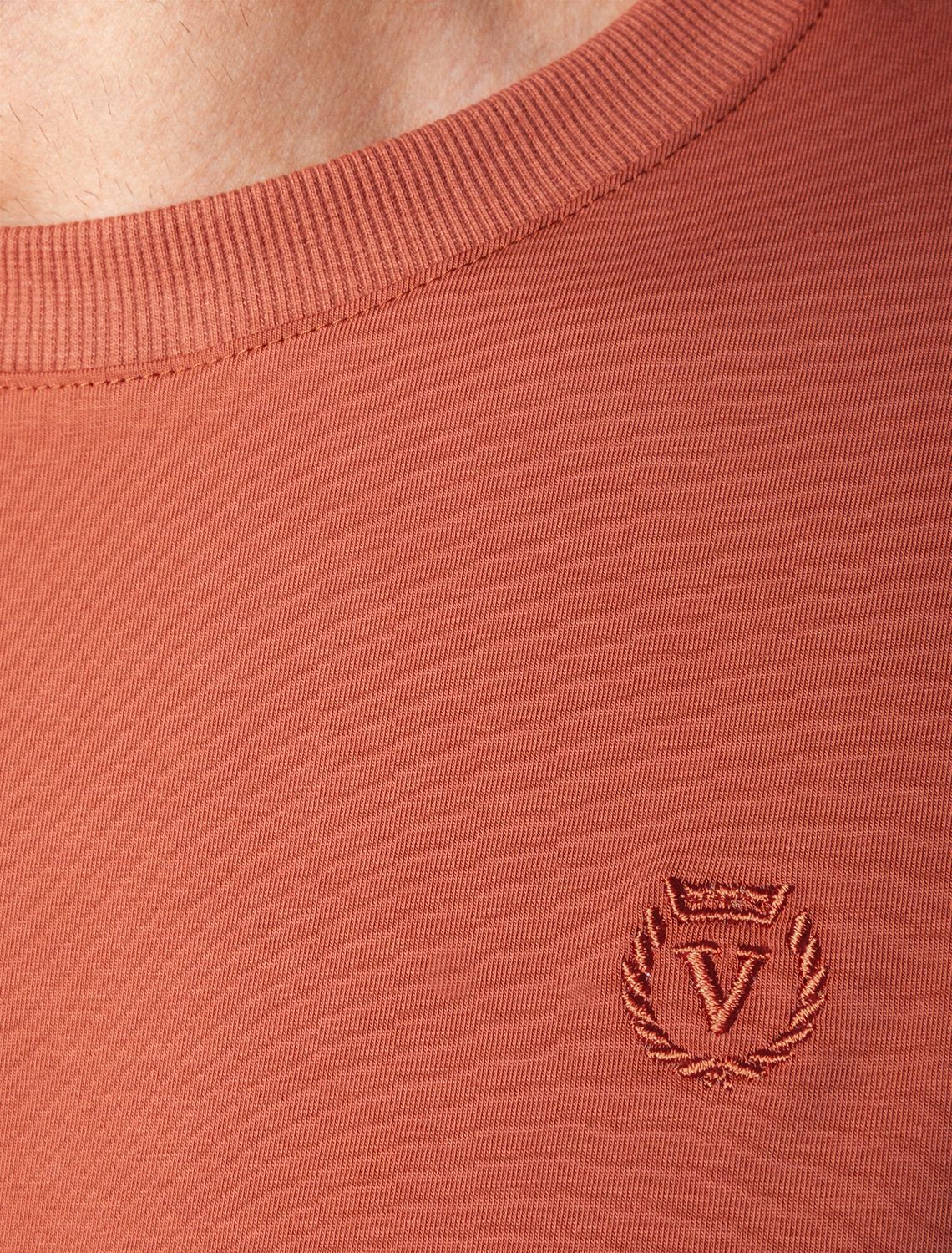 Однотонная футболка выполнена в минималистичном стиле, дополнена аккуратной вышивкой на груди в виде буквы V в тон изделия, а так нашивкой на рукаве из эко-кожи с логотипом VILATTE. Подходит как классический вариант для работы в офисе под пиджак, так и для повседневной носки или занятий спортом. Мягкая ткань приятна к телу, не вызывает дискомфорта и идеально подходит для дома или летних прогулок благодаря короткому рукаву.