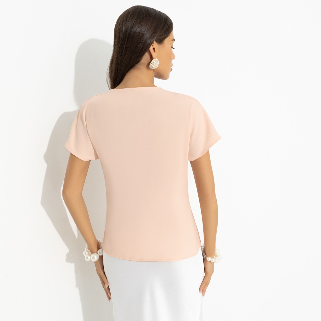 Если бы люди были днями недели, ты в блузе CHARUTTI была бы долгожданной субботой. Неторопливая, расслабленная и любимая абсолютно всеми. Блуза с коротким рукавом классического кроя. Декоративный узел по центру передней части изделия.