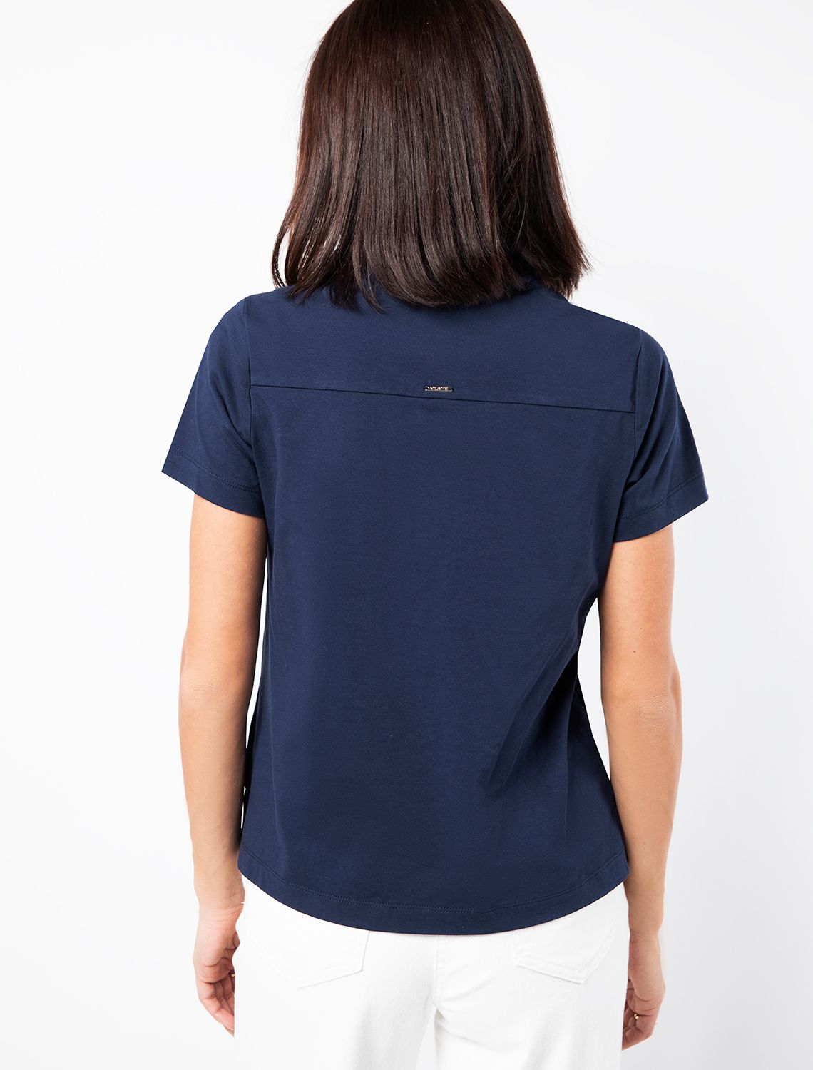Ст.цена 1350р Футболка-поло с золотистыми пуговицами из премиального хлопка D49.908 темно-синий