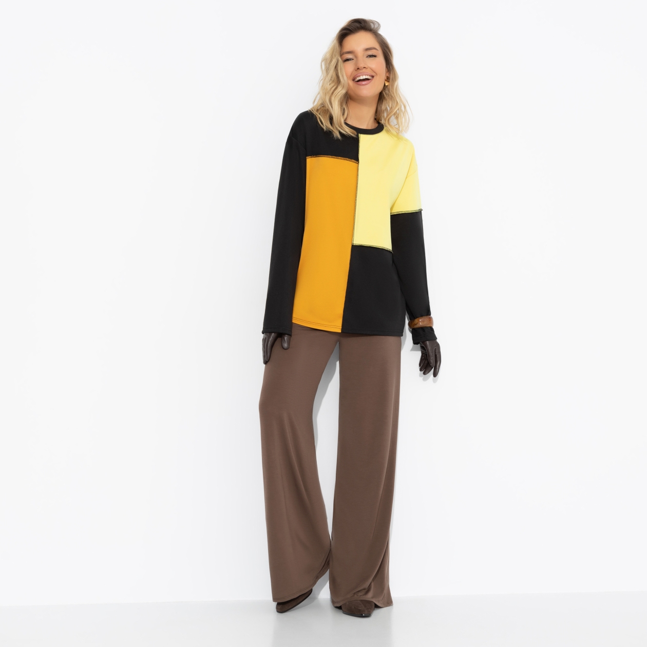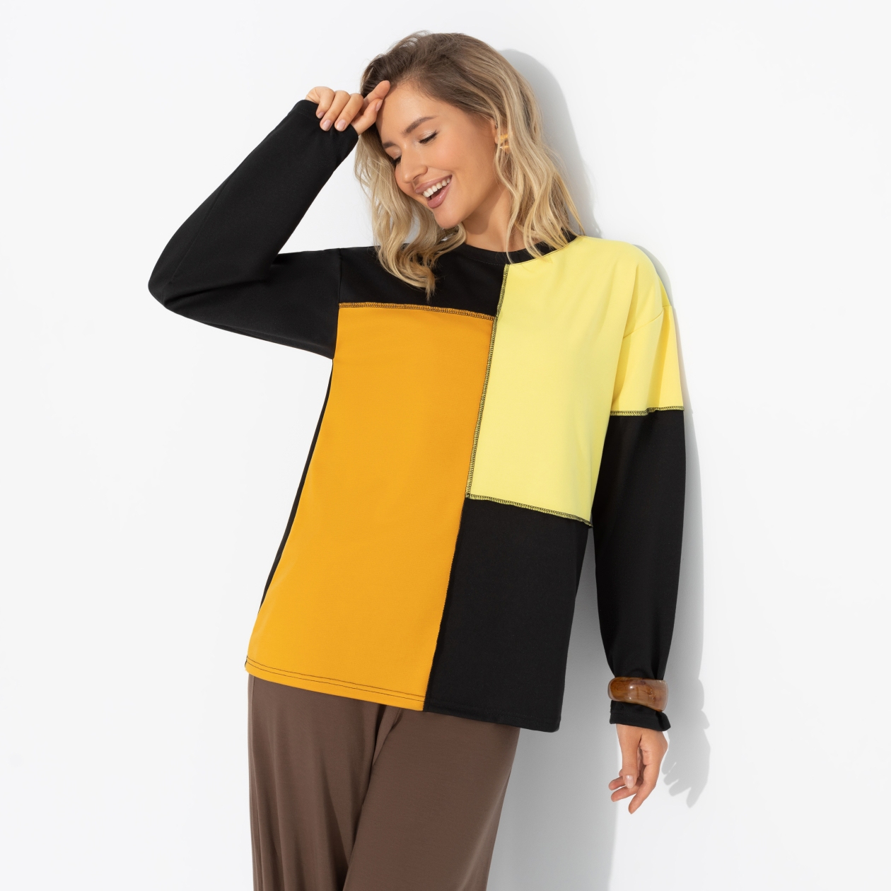 Каждой женщине нужна пауза. От социальных ярлыков, узкой одежды и каблуков. Лонгслив ЧАРУТТИ – манифест комфорта. Его свободный крой обнимает вас мягкой тканью и напоминает, что в жизни важен баланс. Лонгслив объемного кроя, удлиненный. Комбинация нескольких цветов материала. По передней стороне изделия наружние швы.