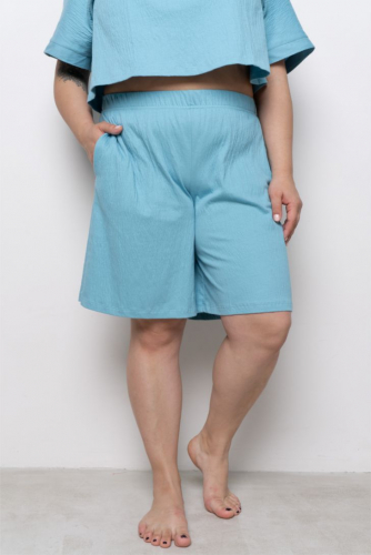 Шорты женские элегантной длины. Пояс на мягкой резинке. В боковых швах функциональные карманы. Шорты уместны как для дома, так и для отдыха. Модель представлена в трех цветовых решениях.
