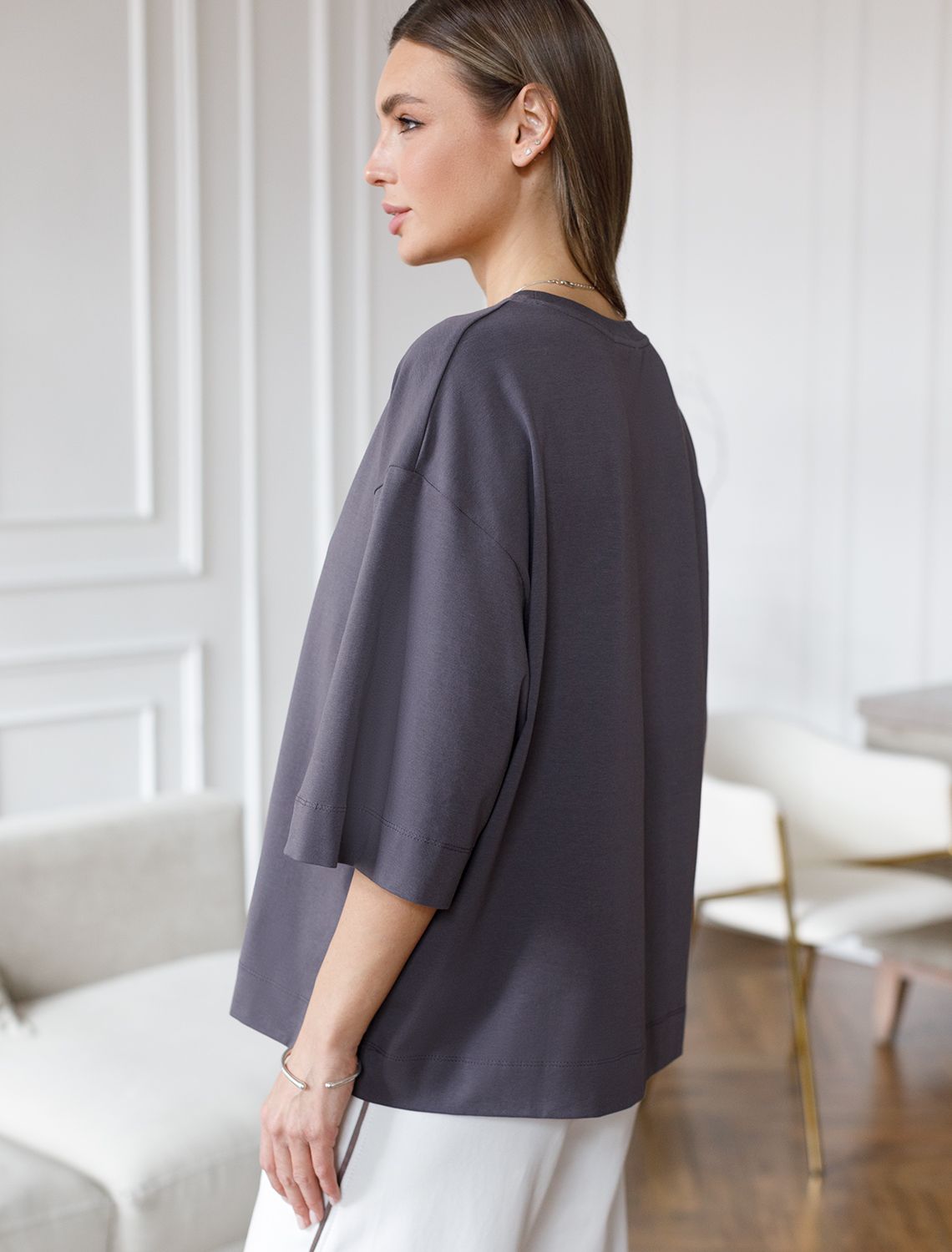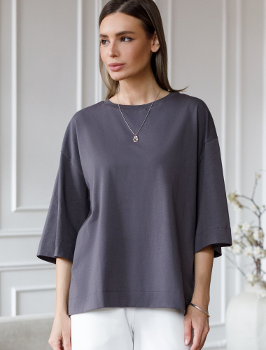 Ст.цена 1350р Свободная футболка из эластичного хлопка D49.004 темно-серый