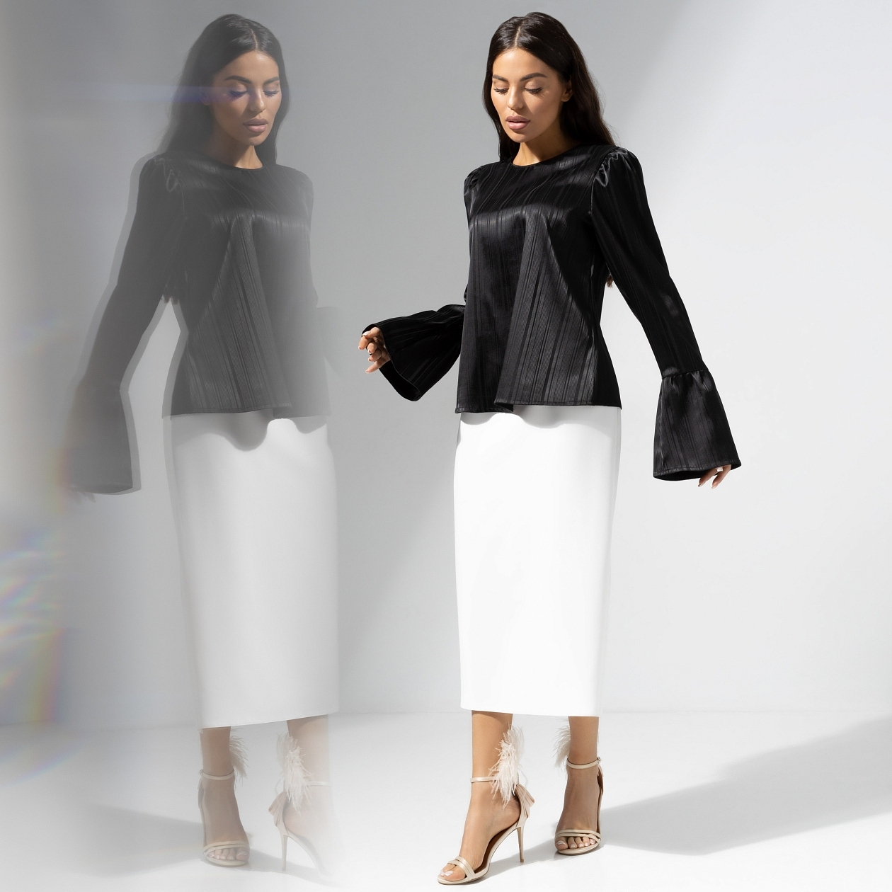 Йога по утрам, два стакана теплой воды с лимоном и минимум 30 минут чтения в день – всё для того, чтобы стать лучшей версией себя. С каждым днем ты чувствуешь больше энергии. Появляется настроение наряжаться. Выбирай блузу CHARUTTI в элегантном черном цвете на пути самосовершенствования. Блуза прямого кроя с удлиненными дизайнерскими рукавами. Расклешенная манжетная часть рукава. Изделие имеет акцентную молнию по спинке. Хорошо смотрится в заправленном виде и навыпуск.