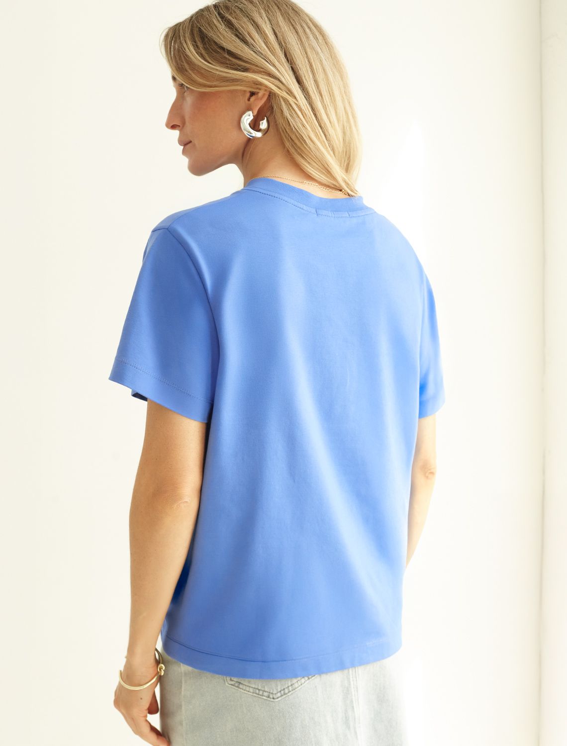 Ст.цена 1390р Футболка из премиального хлопка с авторским принтом D49.098 васильковый_фрукты