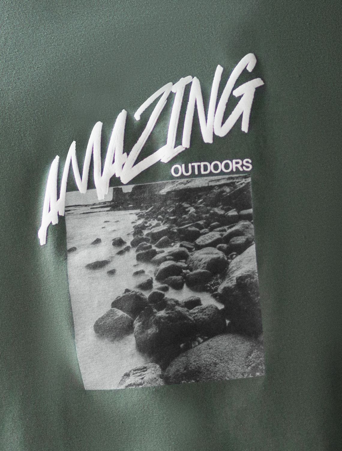 Ст.цена 1190р Футболка из премиального хлопка с авторским принтом U49.026 т.оливковый_amazing