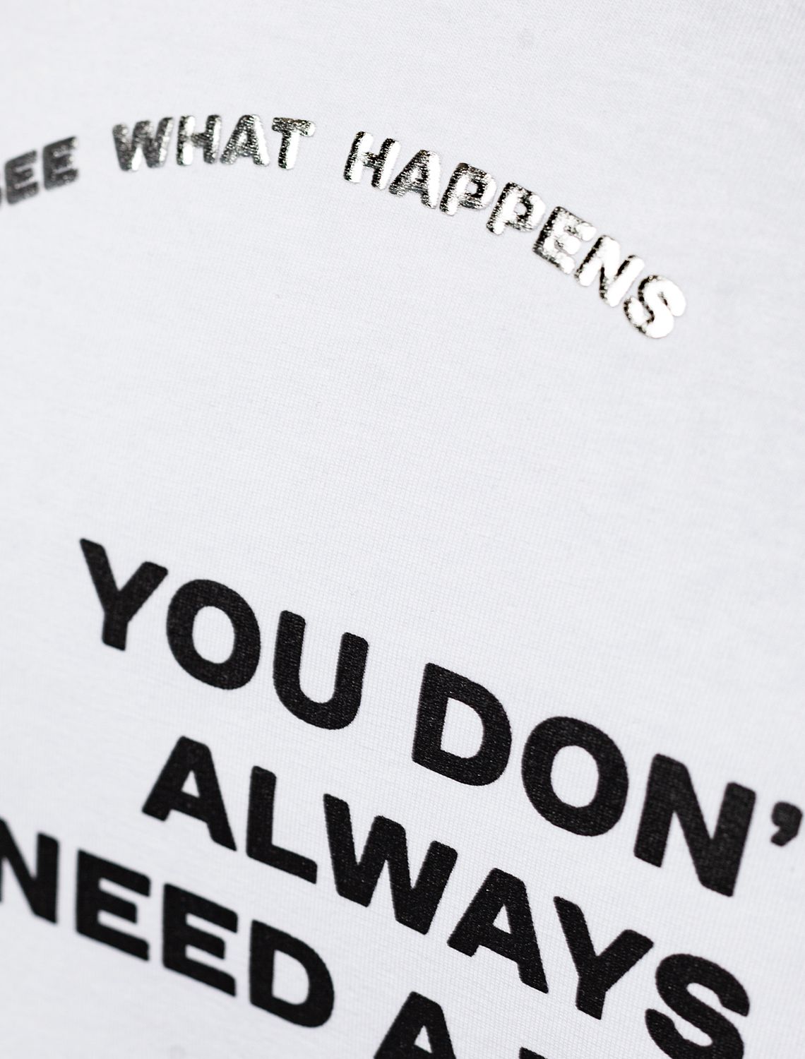 Перевод надписи: «Не всегда нужен план. Иногда просто нужно сделать вдох, довериться, и ты увидишь, что произойдет» Футболка выполнена из премиального хлопка. Крупная надпись выполнена красками, маленькая - золотой фольгой с устойчивым покрытием. Наличие эластана в составе способствует комфорту и формоустойчивости, помогая сохранить изделие в течении долгого времени в идеальном состоянии. Модель дополнена фирменным металлическим логотипом бренда.
