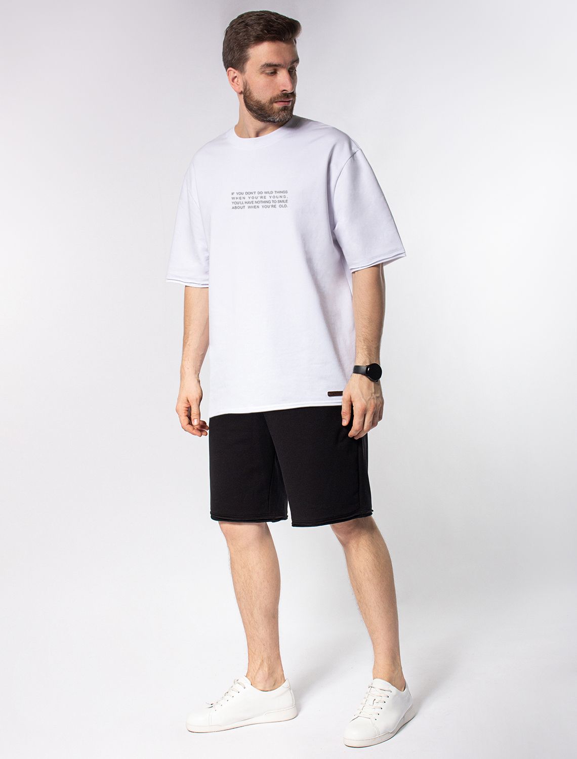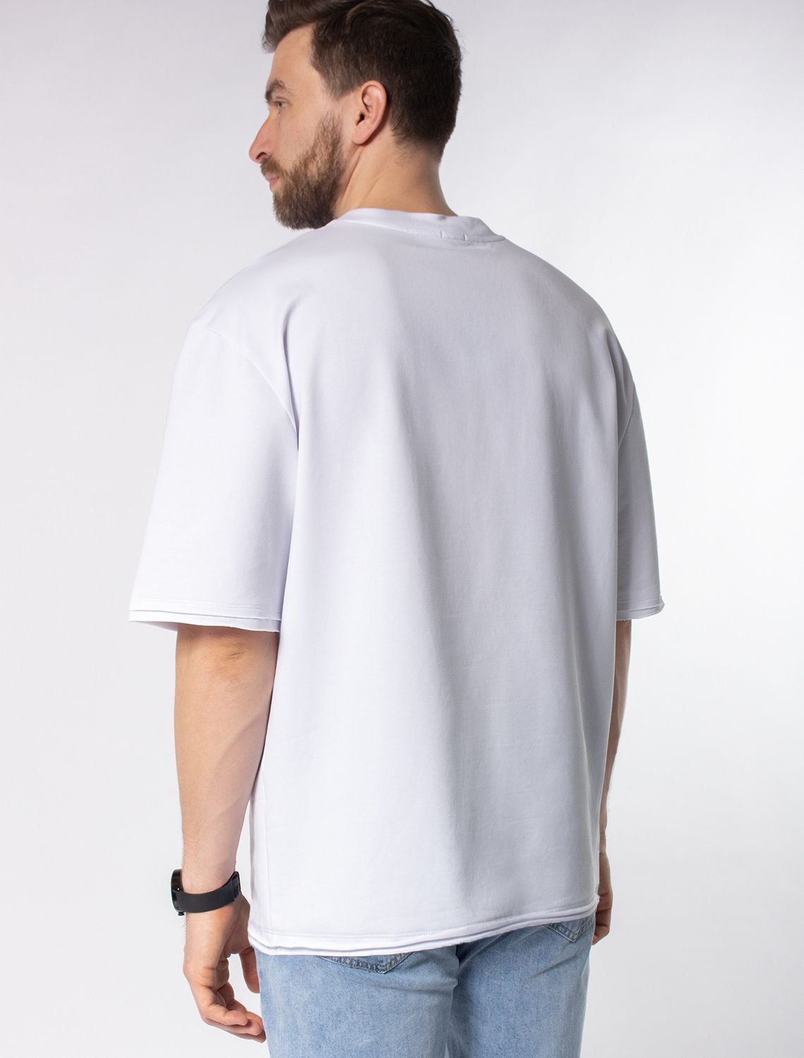 Ст.цена 1390р Футболка с открытыми срезами из тонкого футера с принтом U49.011 белый