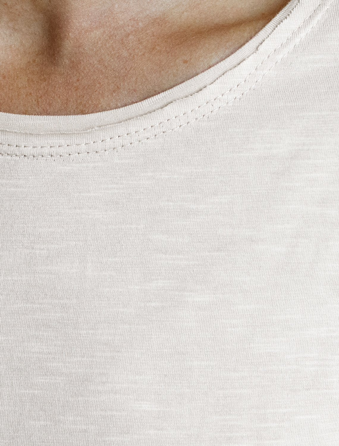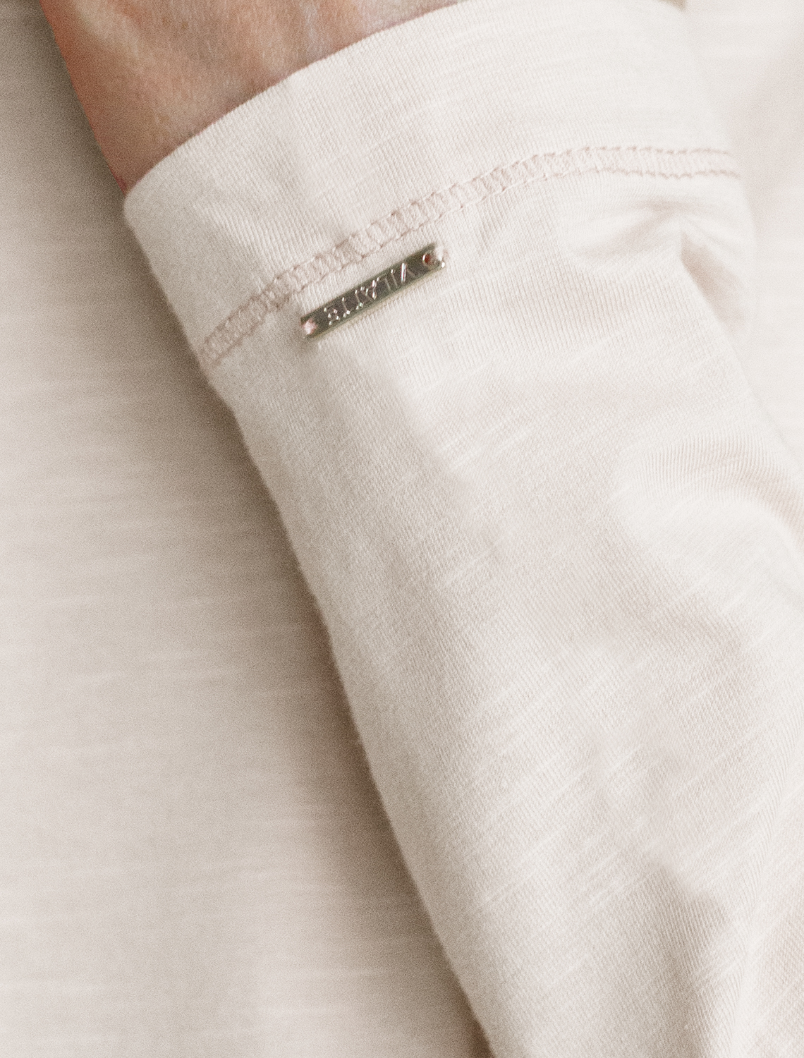 Лонгслив выполнен из тонкого трикотажного полотна. Лаконичная модель прямого кроя дополнена открытым срезом на горловине. Фактурная ткань из 100% хлопка с эффектом штрихов обеспечит комфорт даже в самое жаркое время года. Отлично подойдет для базового гардероба и легко сочетается с любым низом. На рукаве фирменный логотип бренда.
