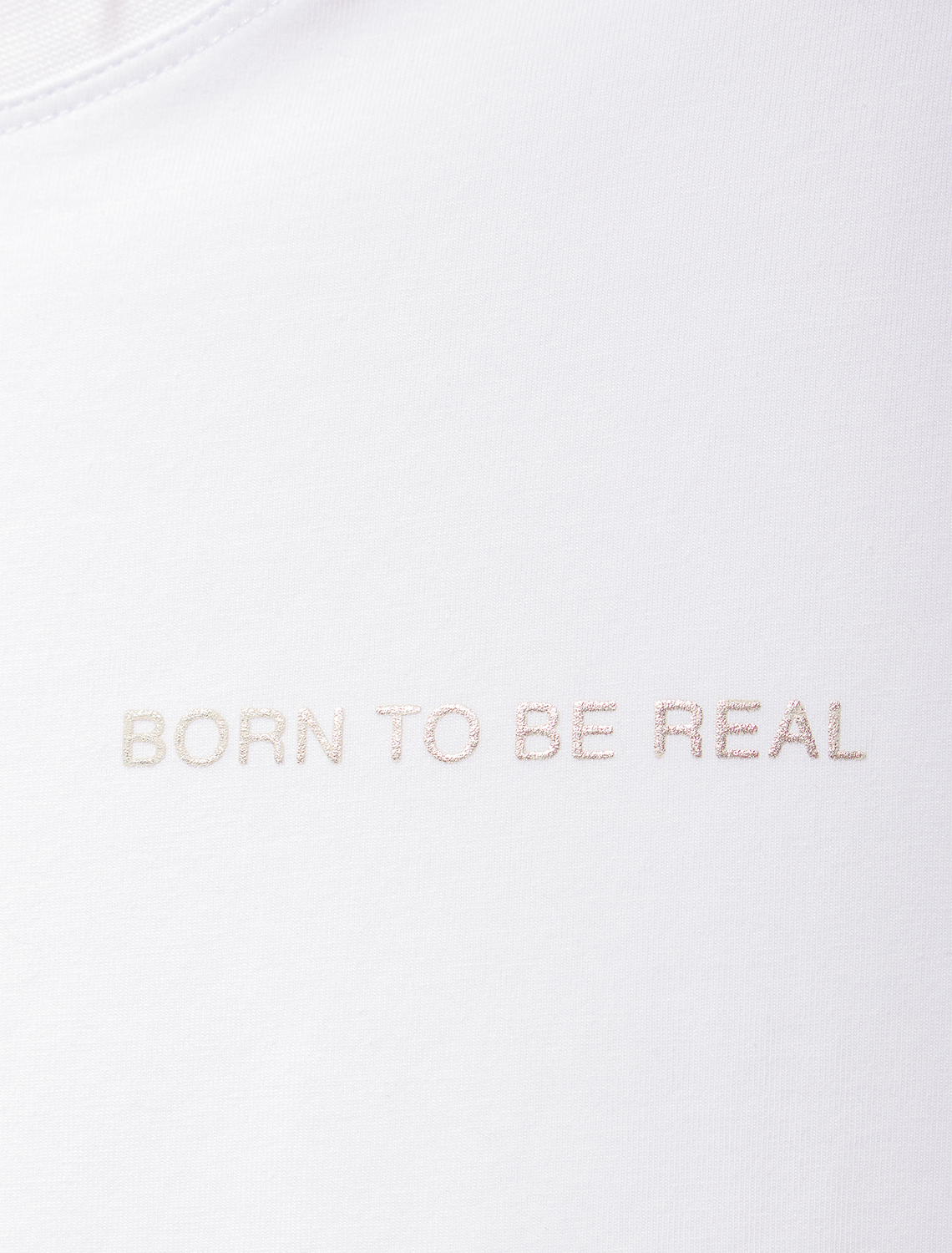 Ст.цена 1390р Лонгслив из премиального хлопка с принтом фольгой D49.979 белый_born_to_be_real