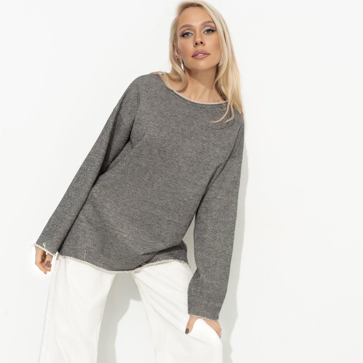 Ты начинала свою карьеру в свитшоте и, находясь на её пике, тоже выбираешь его. Свитшот CHARUTTI вне предрассудков, смотрится так, как выгодно вам. Свитшот прямого силуэта, удлиненный. Эффект необработанного края по подолу изделия. Плотный фактурный материал с блеском. Изделие хорошо смотрится в заправленном виде и навыпуск. Подойдет до 52 размера.