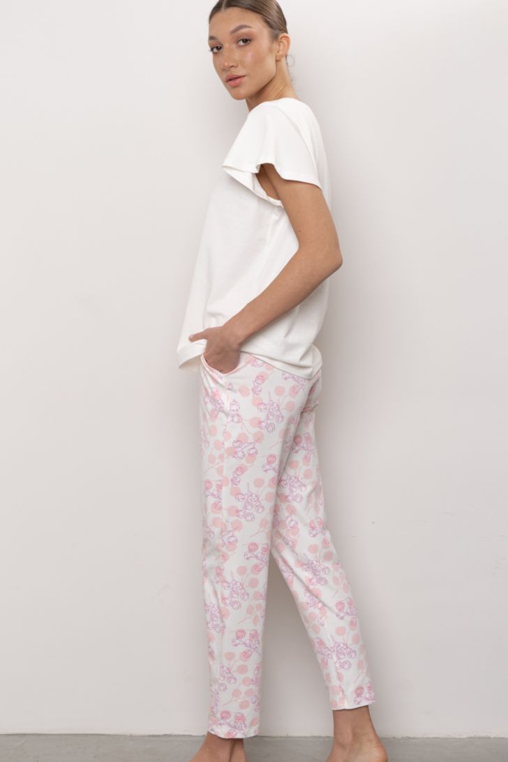 Брюки свободного силуэта, зауженные к низу. Пояс на мягкой, комфортной резинке. В боковых швах функциональные карманы. Длина брюк регулируется подворотами по желанию.