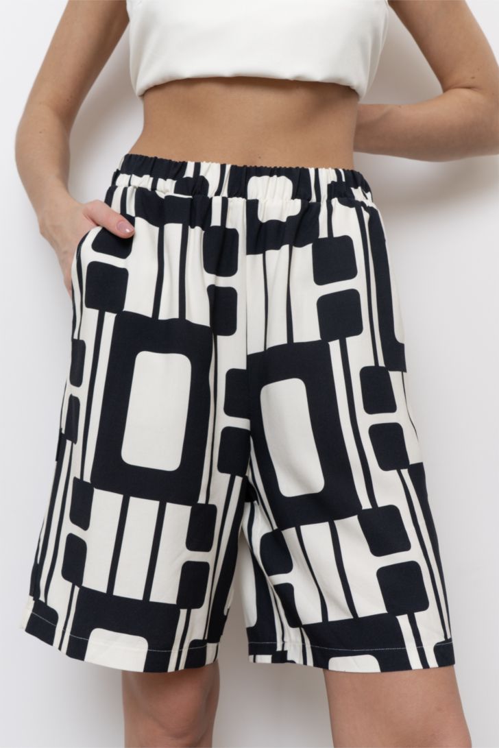 "Шорты классической длины на резинке с функциональными карманами в боковом шве.