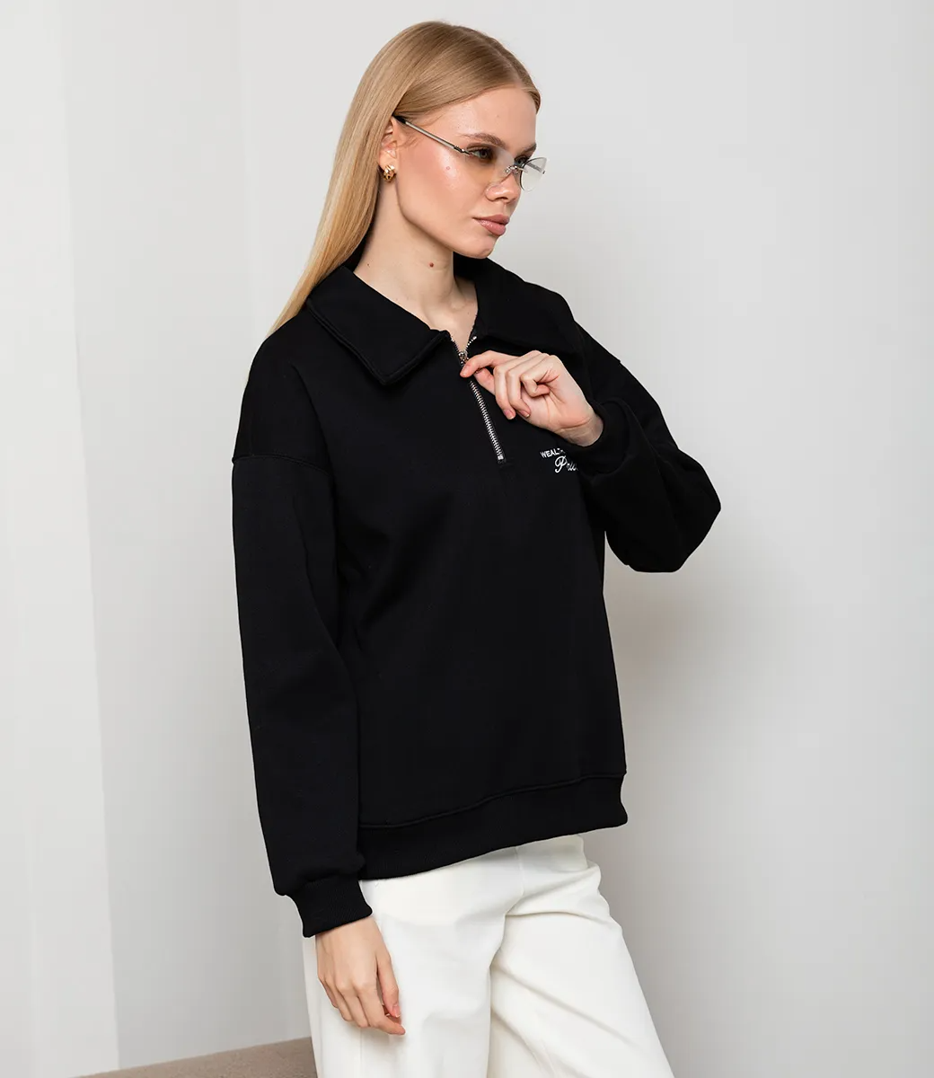 Свитшот – это вещь, которая подчеркивает уникальность каждой женщины. Модель утеплённого свитшота с небольшой вышивкой и молнией на горле отлично подойдет для прохладного сезона и будет прекрасно сочетаться с джинсами, брюками и юбками. Его выбирают покупательницы, которые ценят сочетание качества и низкой стоимости. Фасон подчеркивает привлекательность фигуры. Компания-производитель знает, как разработать стильные и модные решения. Для изготовления использована ткань 90% хлопок и 10% полиэстер, которая характеризуется безупречным качеством. Даже после многократных стирок изделие не потеряет первоначальной красоты. Вы сможете его носить с радостью. Обратите внимание на цвет. Он является насыщенным и полностью соответствует фотографии на сайте. Чтобы вы были уверены в размере, мы представили на странице таблицу. Воспользовавшись ею, вы сможете сами обмерить себя и удостовериться. Предложенная нами цена является доступной. Подарите себе удовольствие быть элегантной! Рост модели 173, 84-58-89.