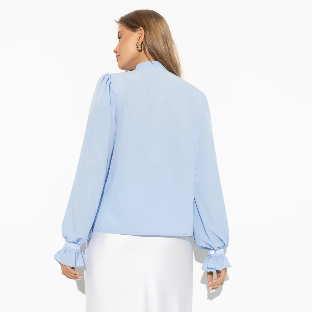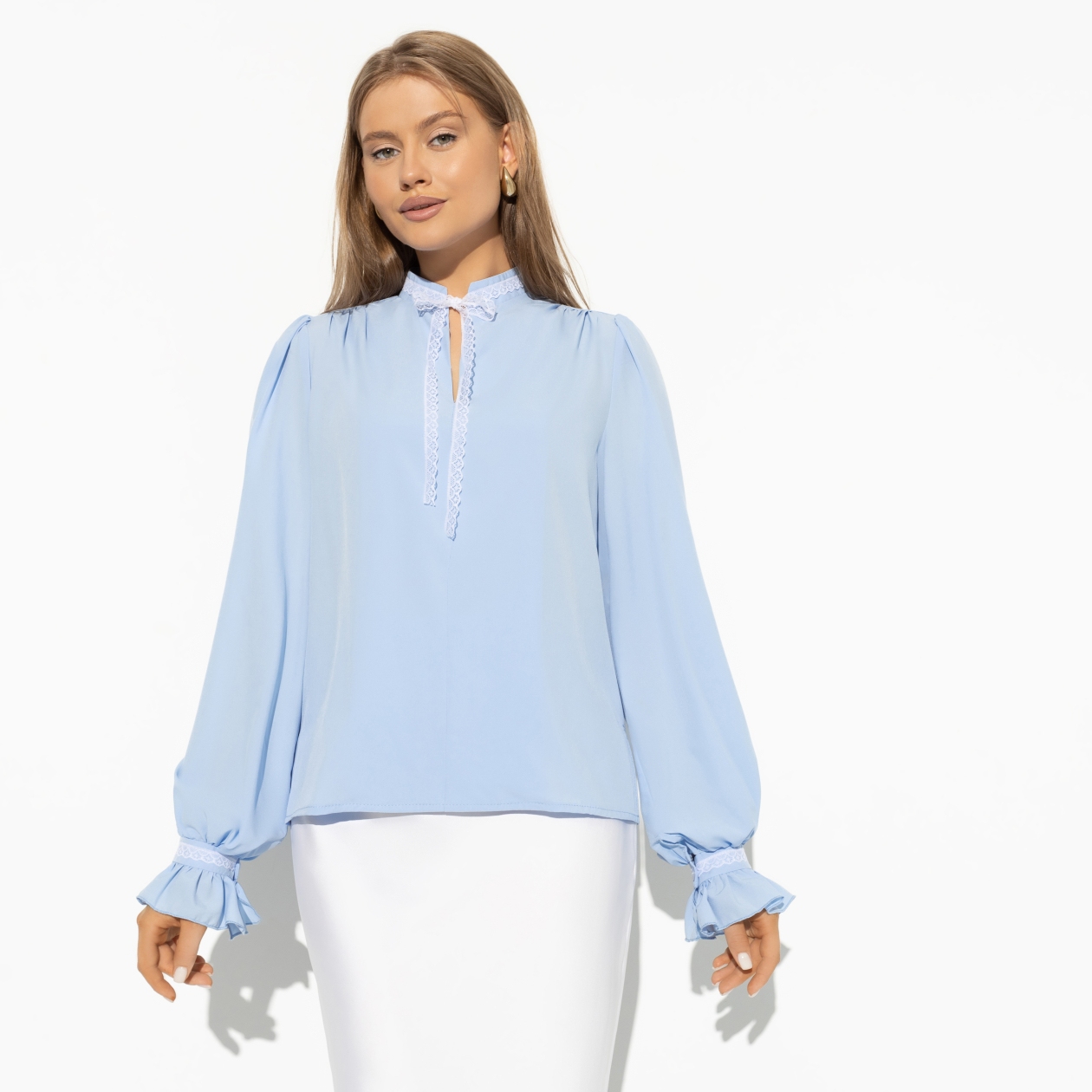 Психологи назвали небесно-голубой цветом, который доказано приносит спокойствие и умиротворение. Выбирайте блузу CHARUTTI, когда пойдет сообщать супругу о своих масштабных тратах. Блуза свободного силуэта. Хорошо смотрится навыпуск и в заправленном виде. Декоративная сборка на линии плеч.