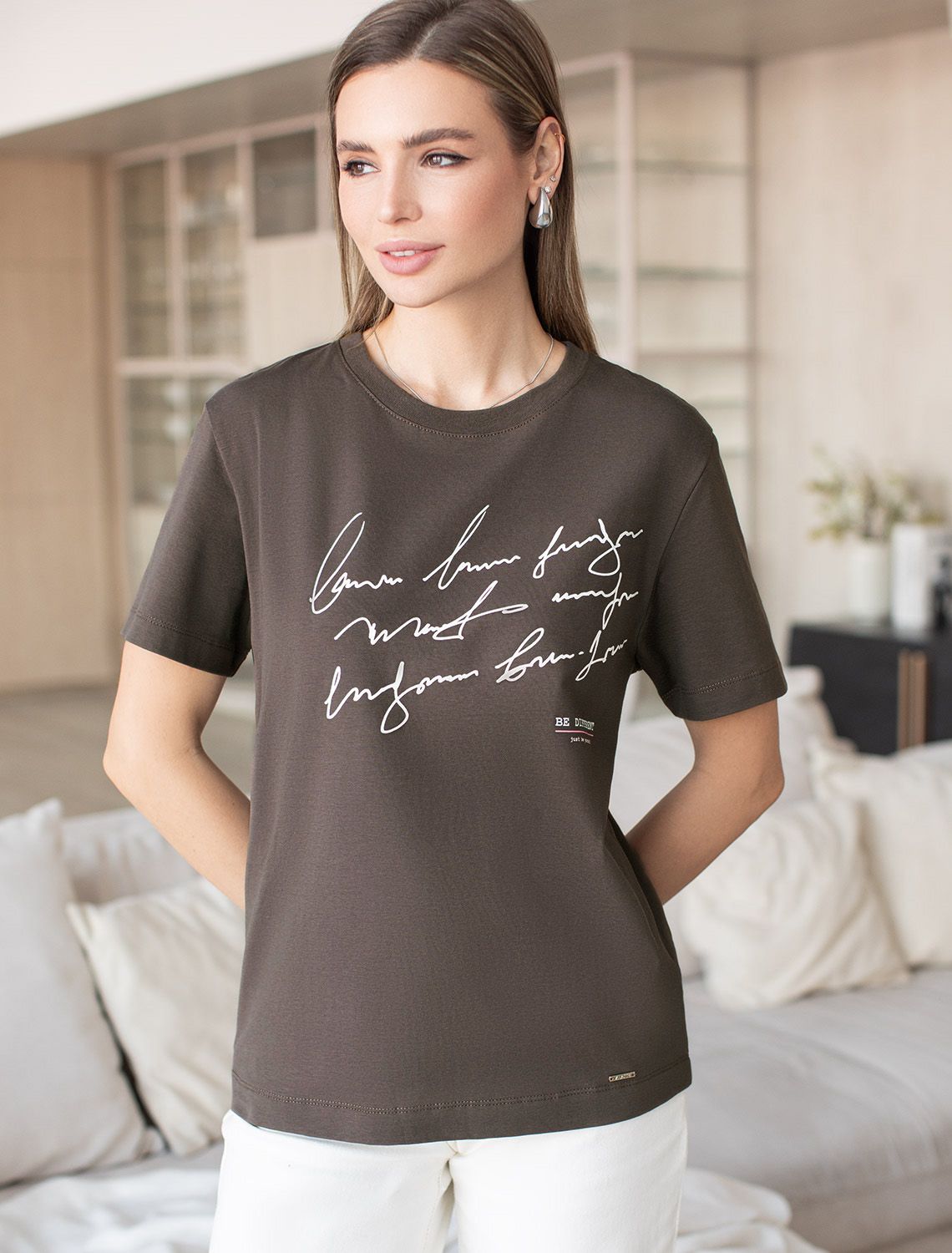 Ст.цена 1490р Футболка из премиального хлопка с авторским принтом D49.983 кофе_be different