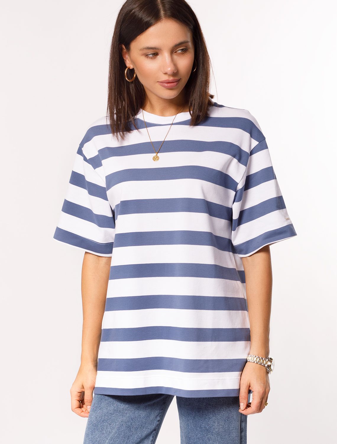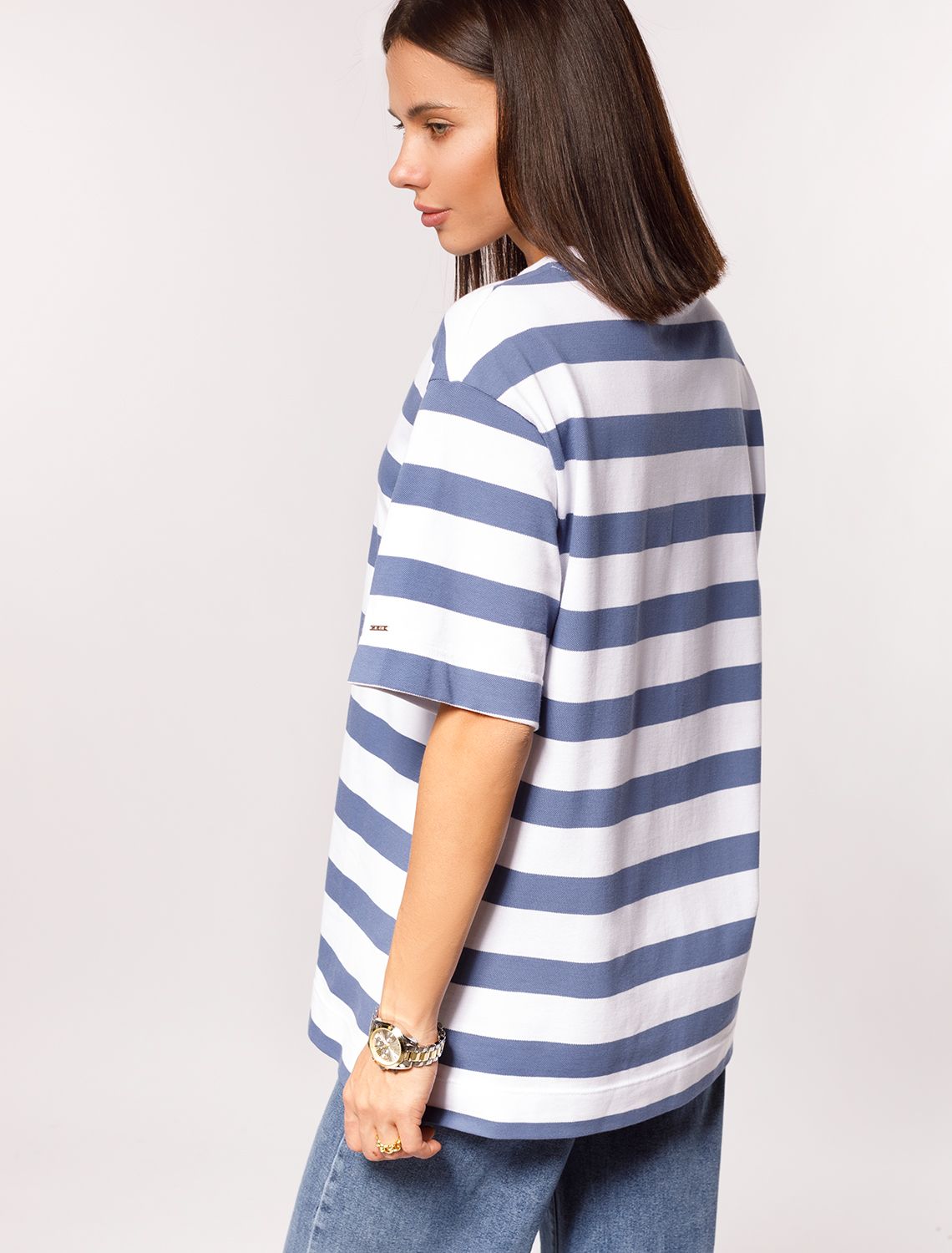 Ст.цена 1490р Футболка over-size из фактурного трикотажа «пике» с эластаном D49.994 светло-синий - белый