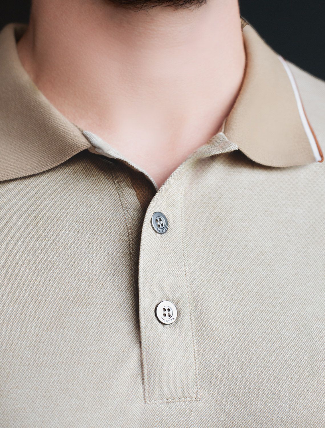 Контрастные линии на воротнике и рукавах добавляют образу стиль old money, а аккуратная нашивка на груди в виде логотипа бренда подчеркивает статусность футболки поло. По бокам аккуратные разрезы для свободы движений и дополнительного удобства.