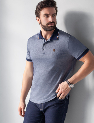 Ст.цена 1490р Футболка поло с воротником на пуговицах из полотна пике с меланжевым плетением с эластаном U49.042 т.бежевый меланж