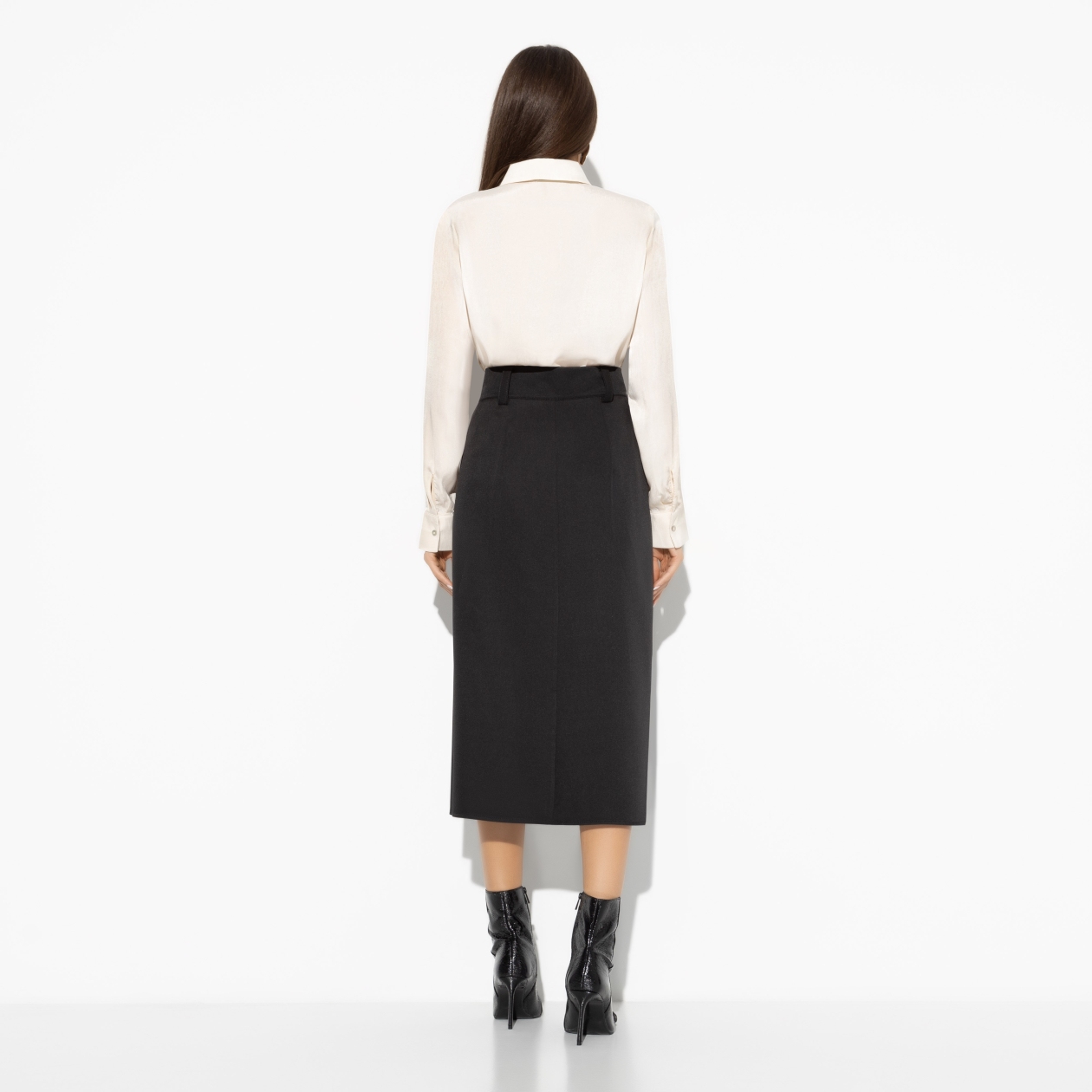 Оружие массового поражения – высокий вырез. Официально разрешен, так как вошел в топ самых горячих трендов сезона. Получите разрешение на использование, купив юбку CHARUTTI. Юбка в длине миди на запах. Застежка на пуговицах. Есть шлевки.