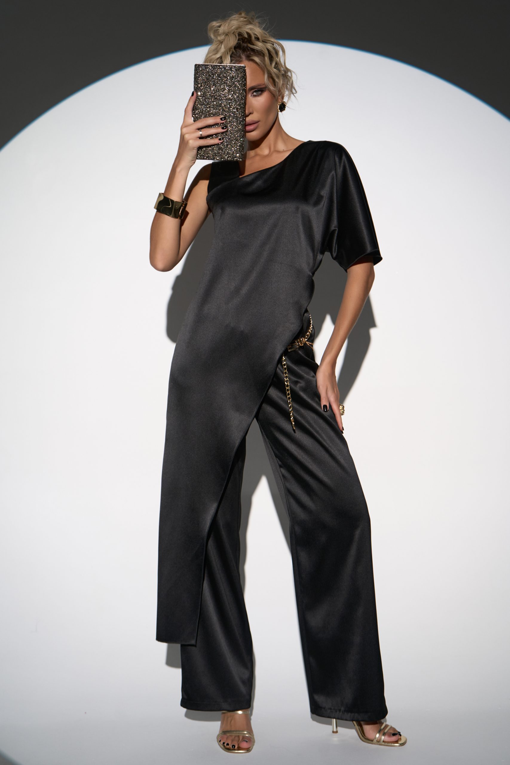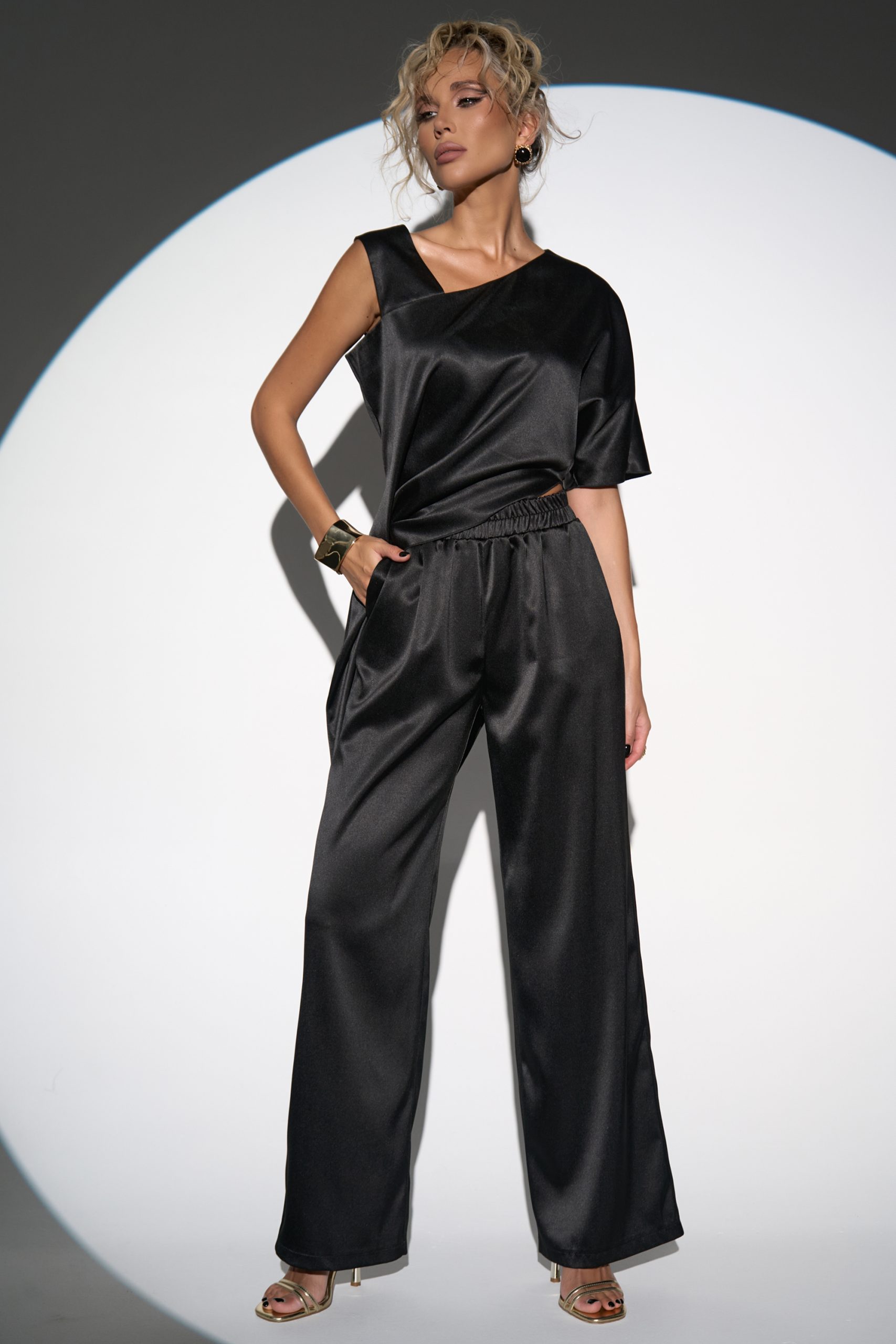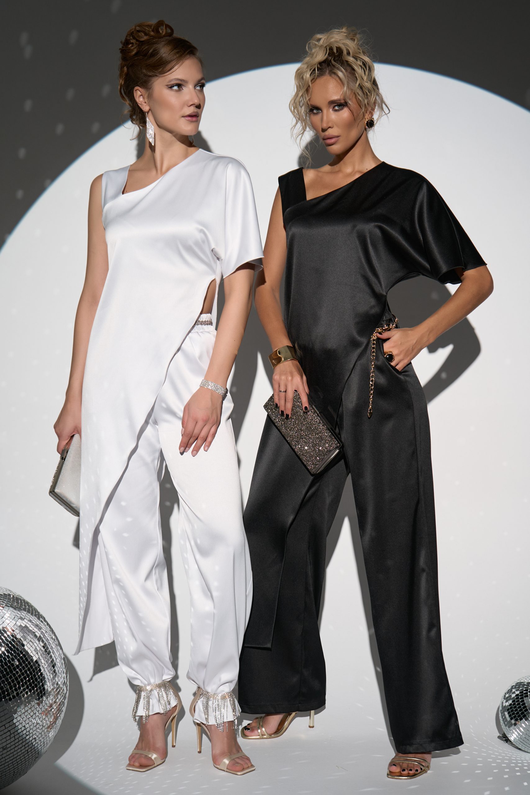 Ткань плотная, струящаяся, с деликатным глянцем, который красиво ловит свет.