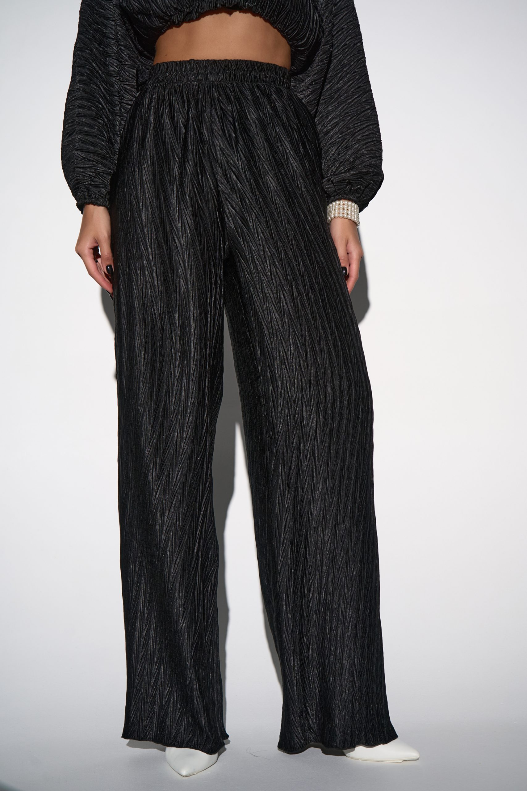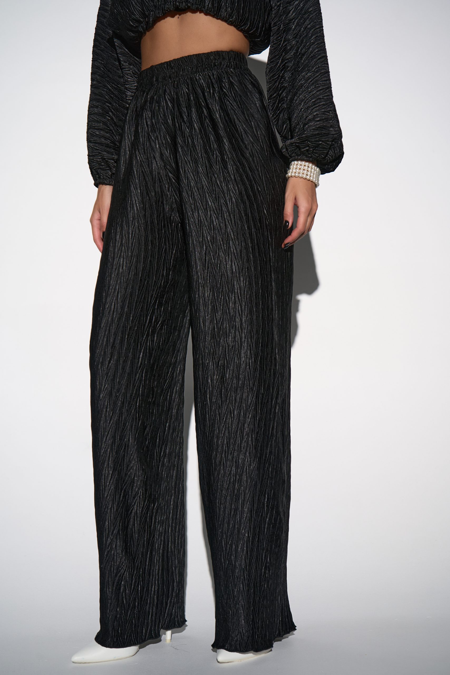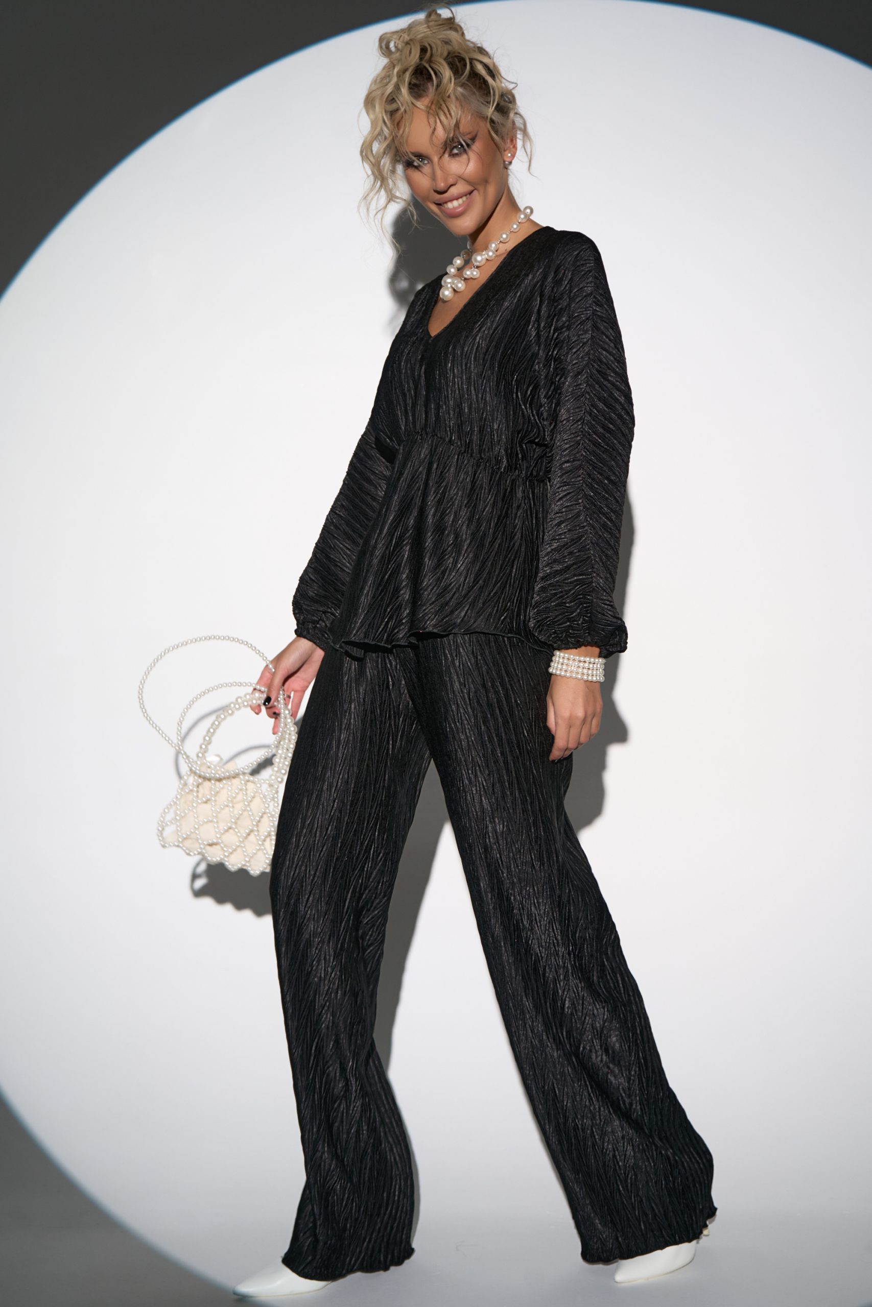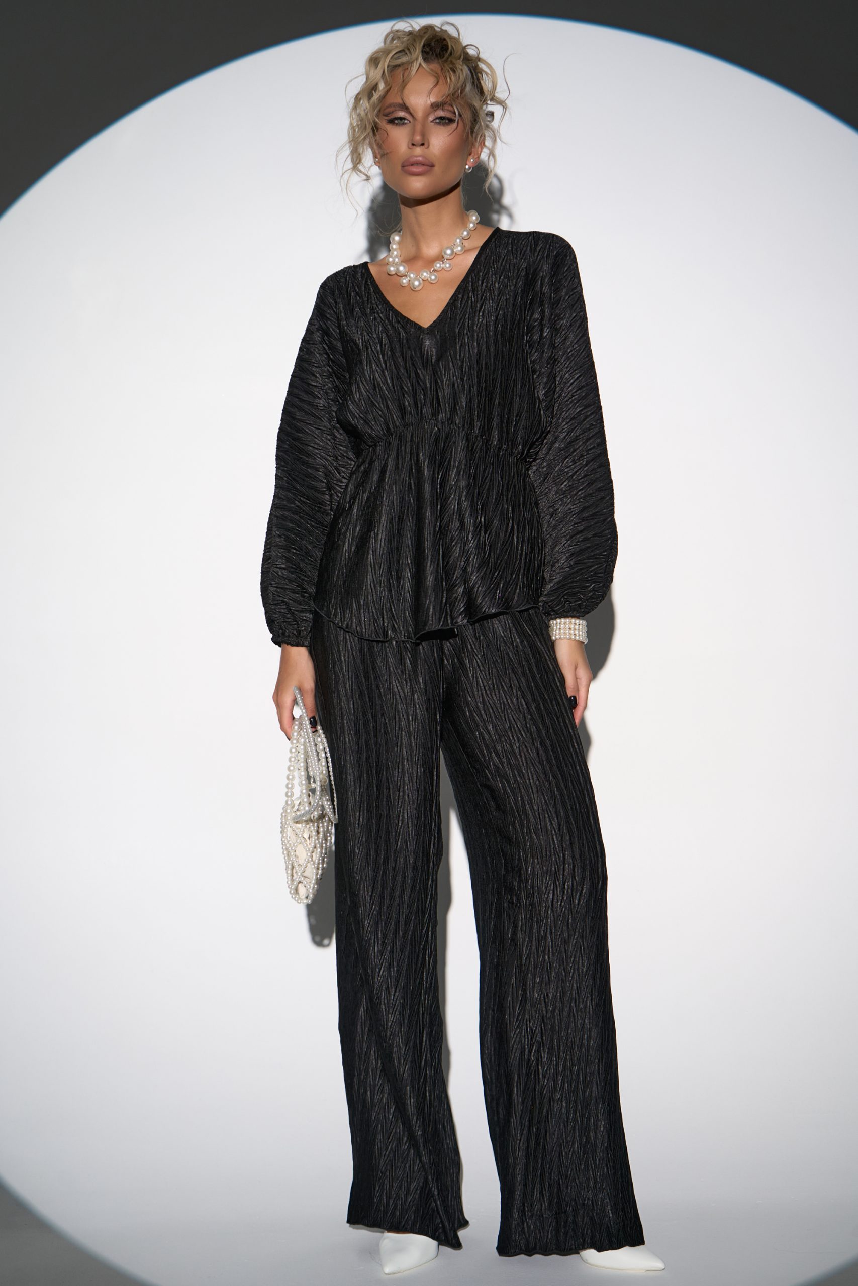 Свободный крой и плиссировка создают элегантный силуэт, а широкие брюки и длинные рукава добавляют образу женственности.Благодаря универсальному дизайну, он подходит как для повседневной носки, так и для вечерних выходов.Костюм выполнен из плиссированной ткани, которая не просвечивает и практически не мнётся. Мы выбрали эту ткань потому что она создает интересную и динамичную фактуру, которая придаёт образу оригинальность и прекрасно смотрится на любой фигуре. Отлично сочетается с блузоном “Маклен”