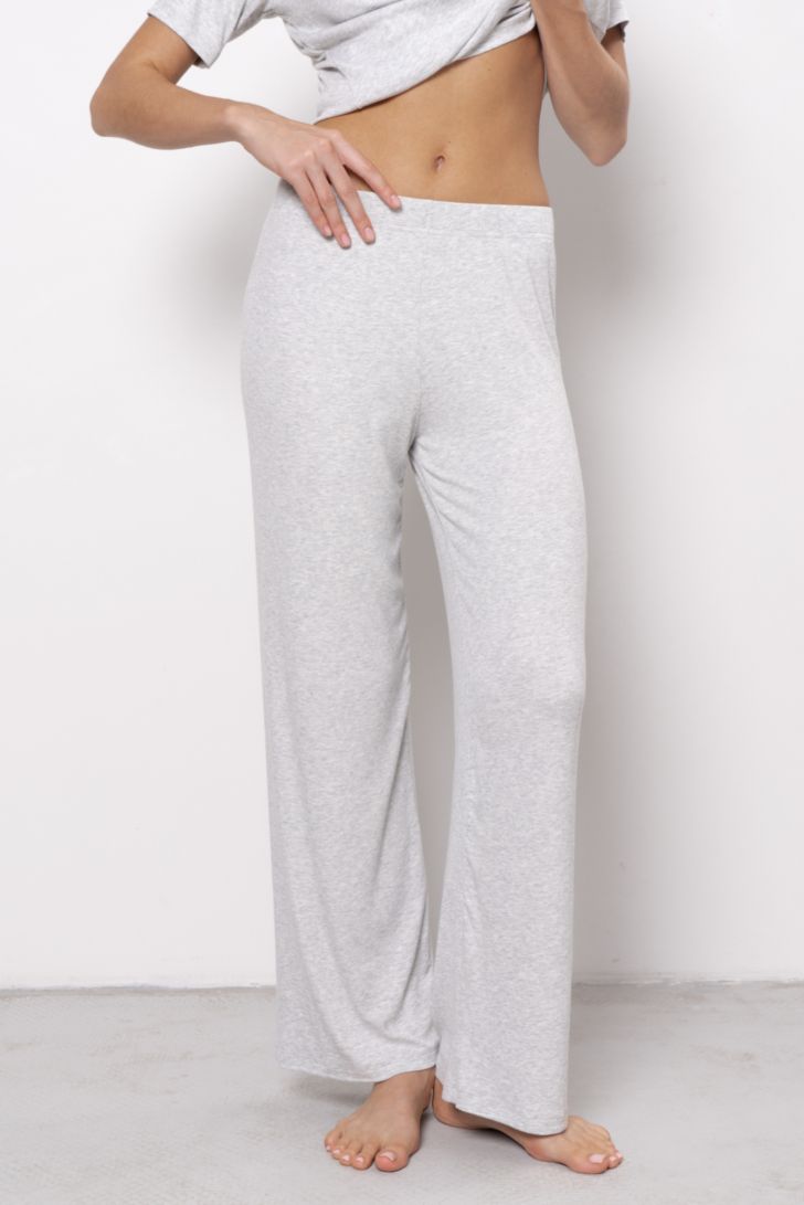 Широкие, струящиеся брюки на поясе с мягкой резинкой. Брюки тактильны и комфортны в носке. Удобны для домашних активностей и отдыха. Модель представлена в трех цветовых решениях.