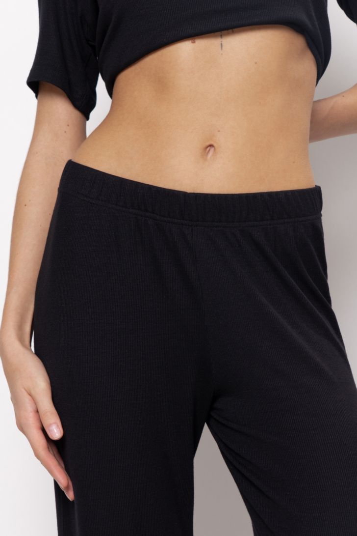 Широкие, струящиеся брюки на поясе с мягкой резинкой. Брюки тактильны и комфортны в носке. Удобны для домашних активностей и отдыха. Модель представлена в трех цветовых решениях.