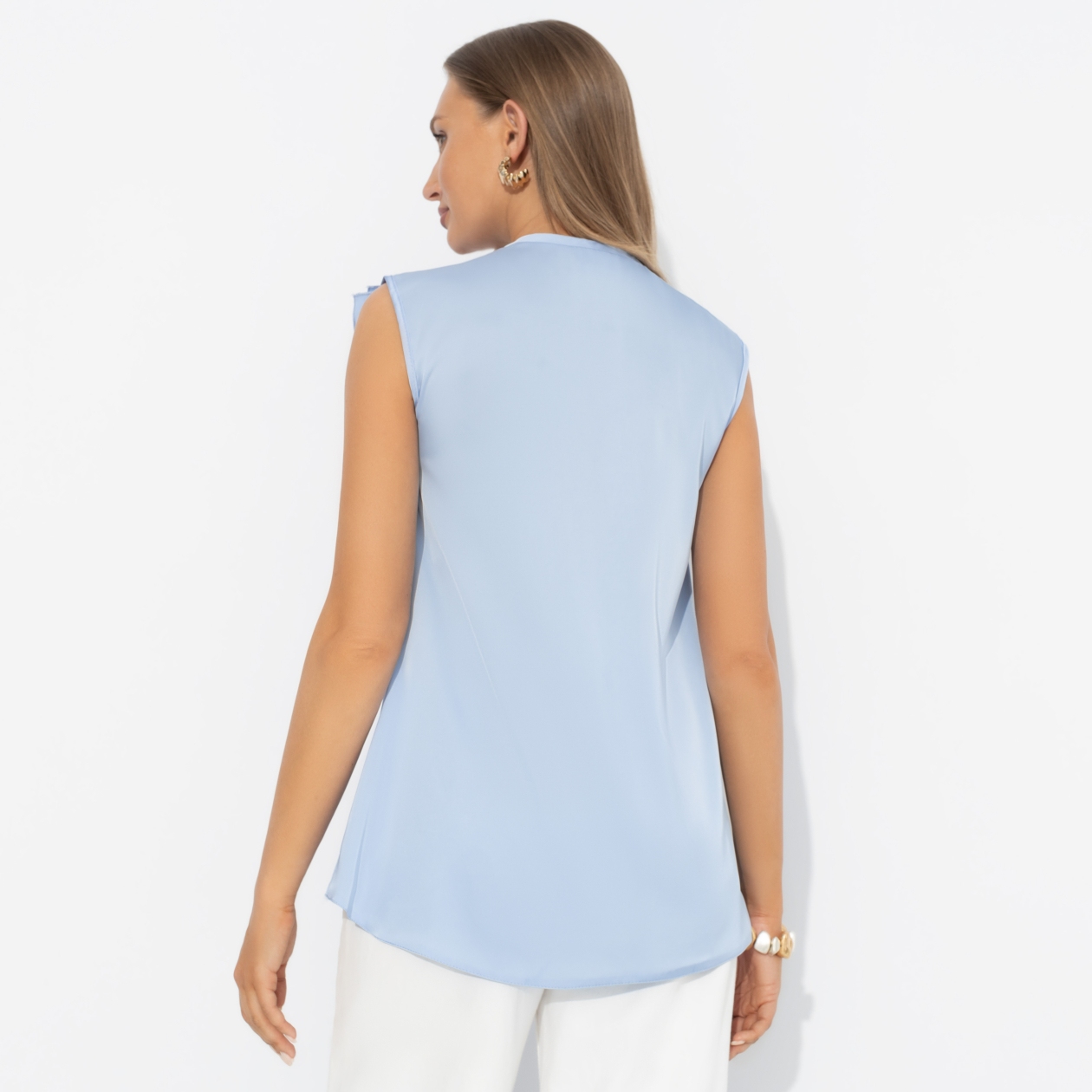 Модный гороскоп. Впервые в истории астрологии звезды и другие небесные объекты выстроились в отчетливо читаемое слово «Покупай». Если вы ждали знак, то эти новости для вас. Топ CHARUTTI в небесном оттенке долго задерживаться на полках не будет. Топ без рукавов. Объемные рюши по центральной части изделия. Свободная посадка изделия. Топ хорошо смотрится на любом типе фигуры.