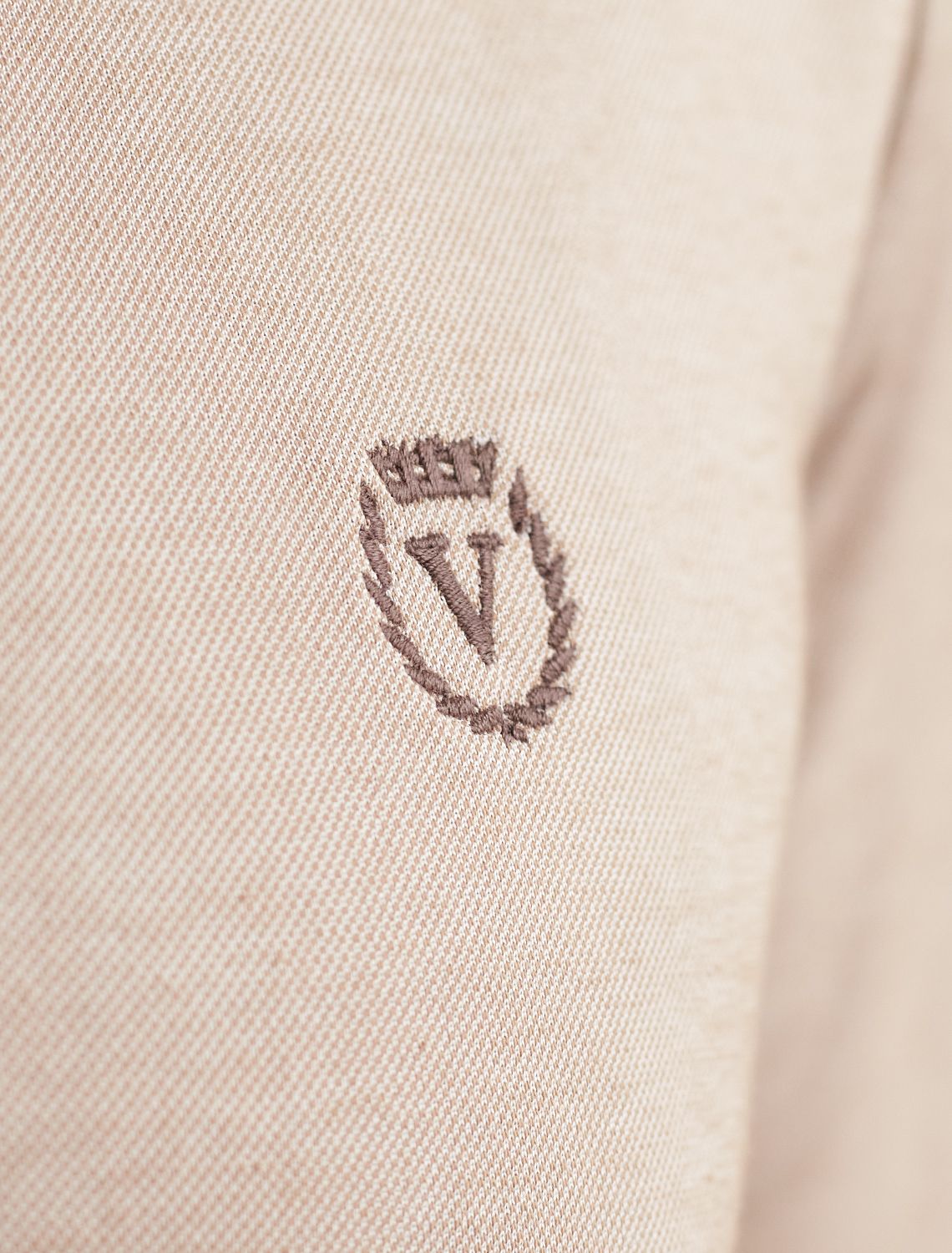 Контрастная планка и пуговицы в благородном матовом металле поддерживают стиль old money, а аккуратная нашивка на груди в виде логотипа бренда подчеркивает статусность. По бокам аккуратные разрезы для свободы движений и дополнительного удобства.