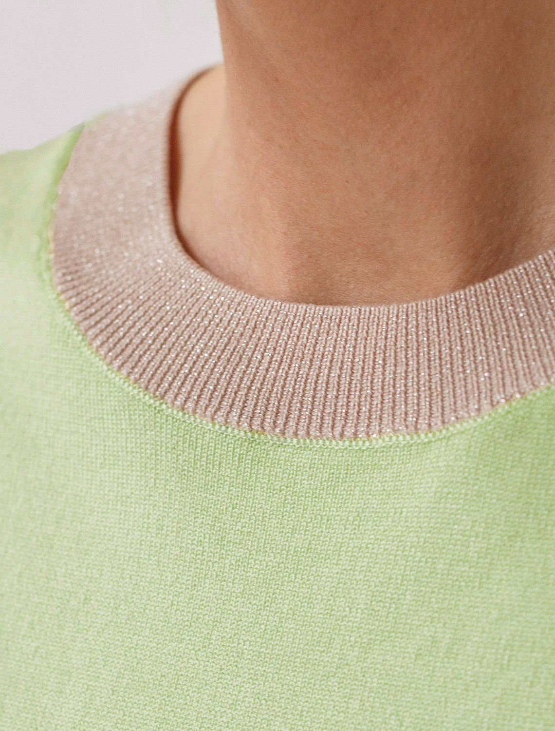 Ст.цена 1590р Джемпер с коротким рукавом тонкой вязки из вискозы с люрексом D39.388 светло-зеленый