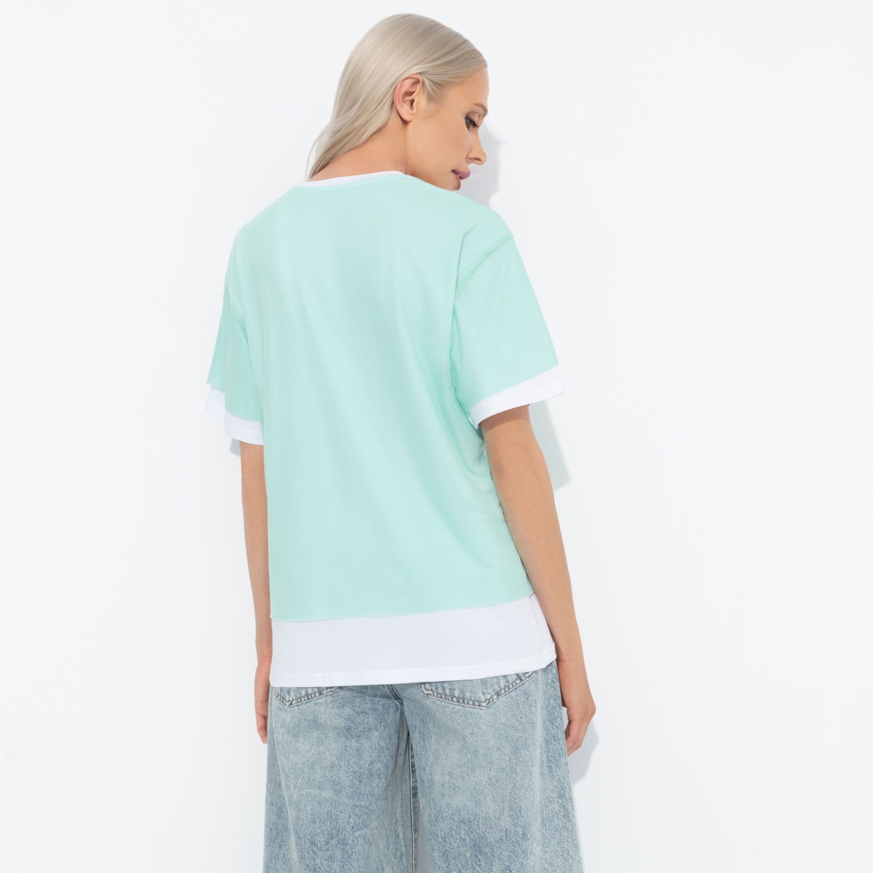 Проснуться на рассвете, чтобы исполнить мечту. Надеть футболку CHARUTTI в ментоловом цвете, вдыхать прохладный утренний воздух и отправиться в аэропорт. Что может быть лучше такого начала дня?! Футболка свободного кроя. Изделие цельное, с имитацией многослойности. Чуть удлиненное, свободный крой.