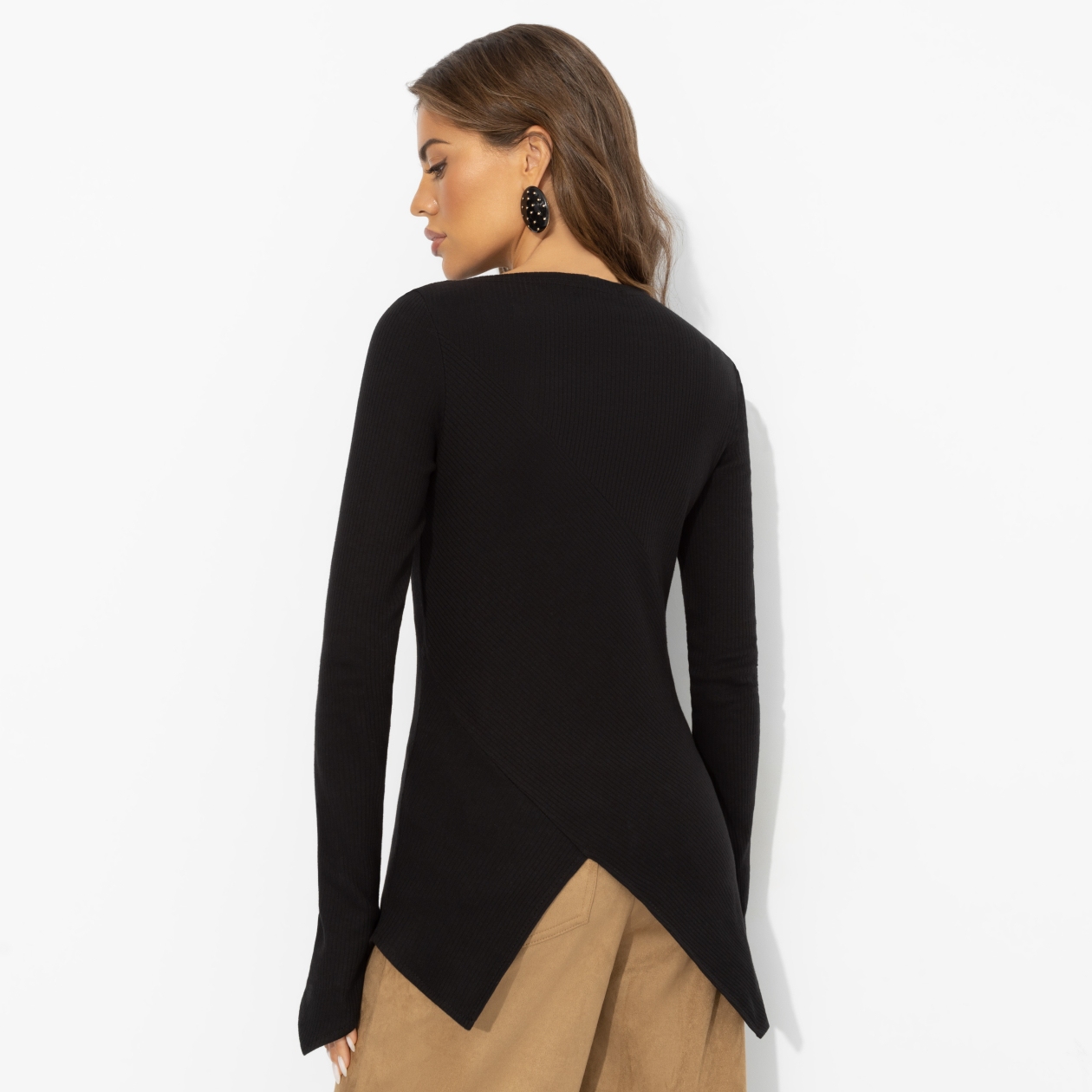 Этот лонгслив отработает как Photoshop для фигуры: вытянет силуэт, подчеркнёт осанку и придаст движениям грациозность. Асимметричный низ и плотный трикотаж наполнят образ графичностью, будто ваша идеальная фигура вычерчена одной уверенной линией. В таком наряде вы однозначно обратите внимание того, кто ценит строгость и достоинство. Облегающий лонгслив из мягкого хлопкового интерлока с добавлением лайкры комфортно садится по фигуре и визуально стройнит. Асимметричный край спереди и удлинённые рукава добавляют динамики образу, позволяя носить модель и с прямыми джинсами, и с классическими брюками, не теряя ощущения идеальных пропорций.