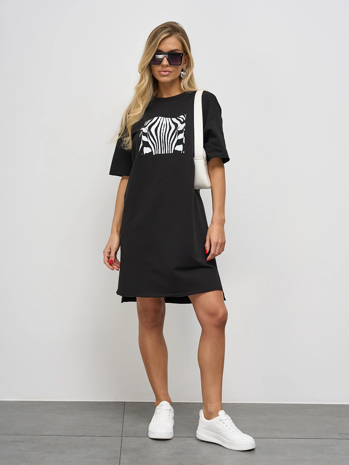 Платье-футболка свободного силуэта из тонкого футера 2-х нитка.