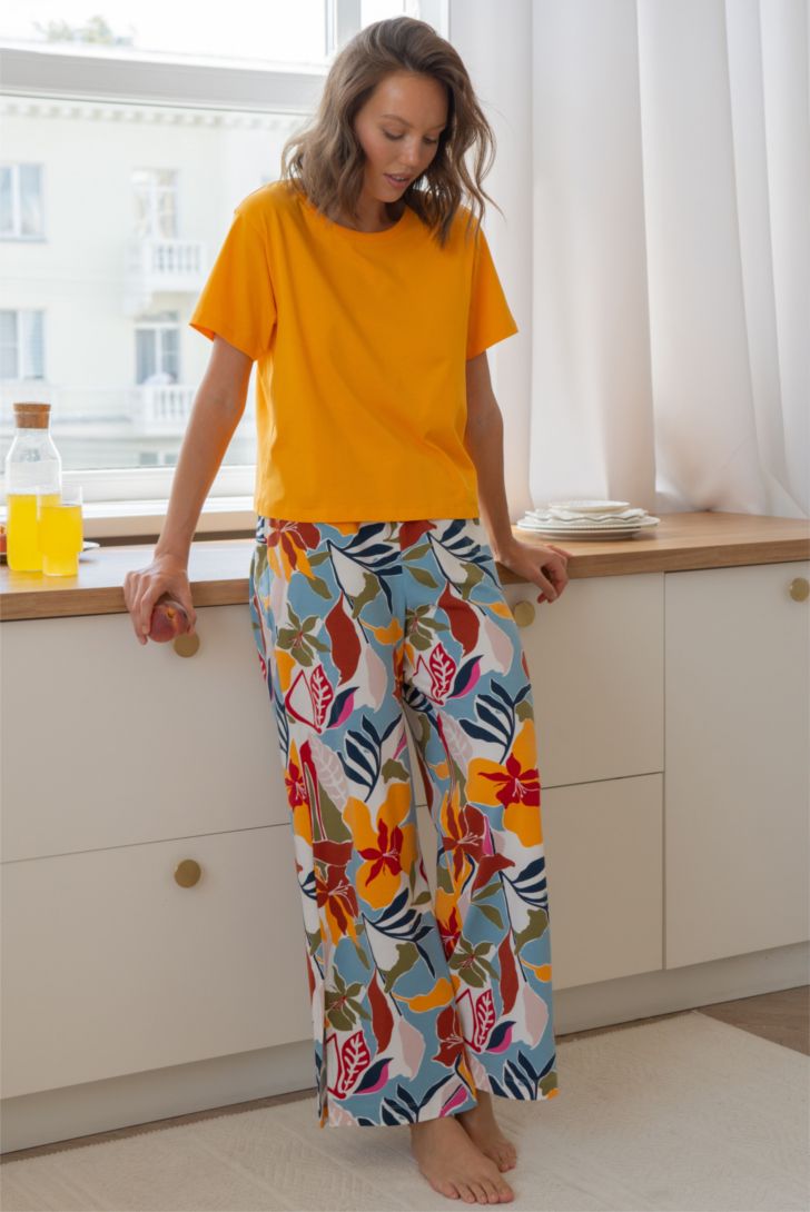 "Комфорт без компромиссов! Любимая модель брюк наших поклонниц. Брюки палаццо на поясе с широкой, мягкой резинкой. В боковых швах функциональные карманы. По низу брюк разрезы.