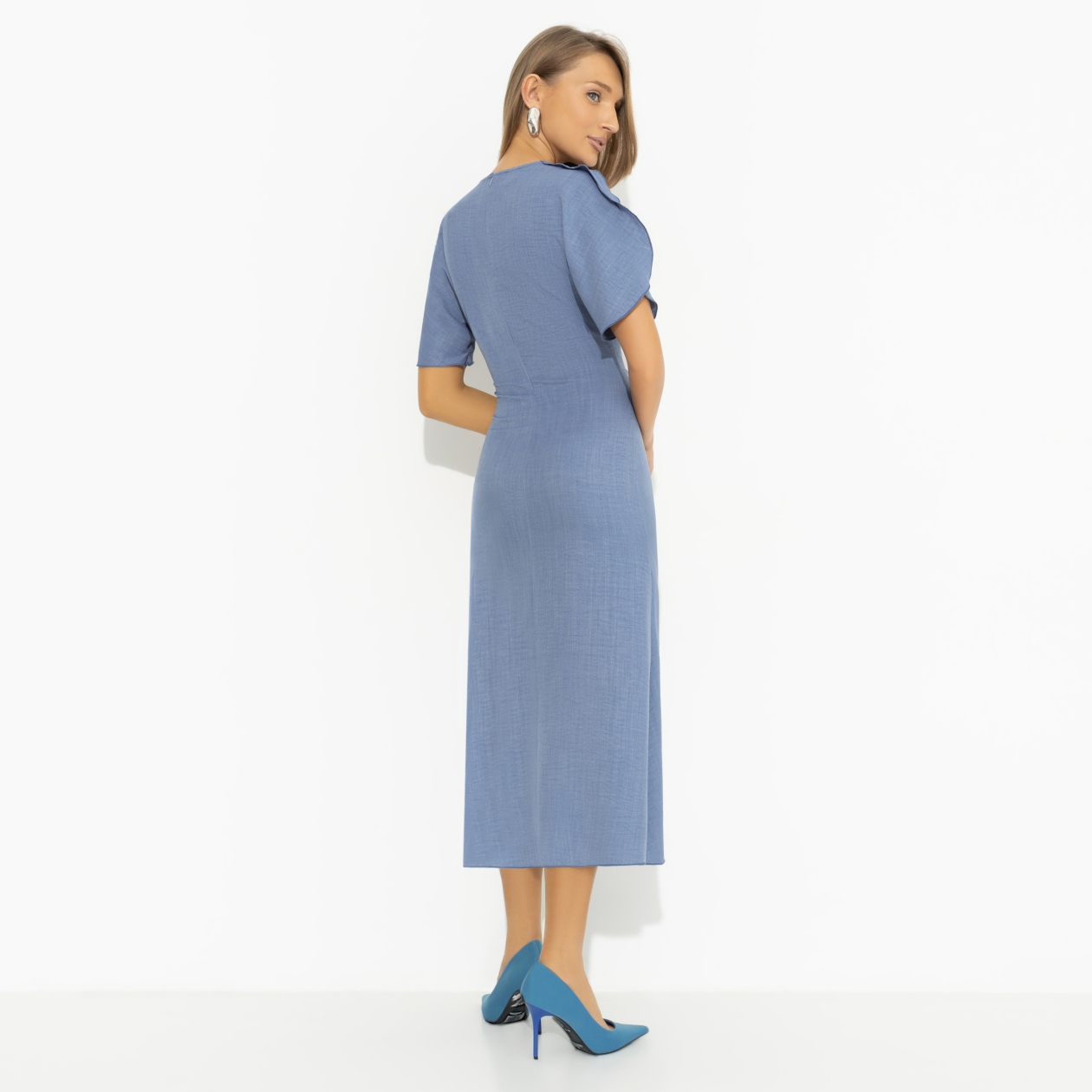 Ст.цена 1650р. Платье с драпировкой и воланами, Прямое попадание (голубое)