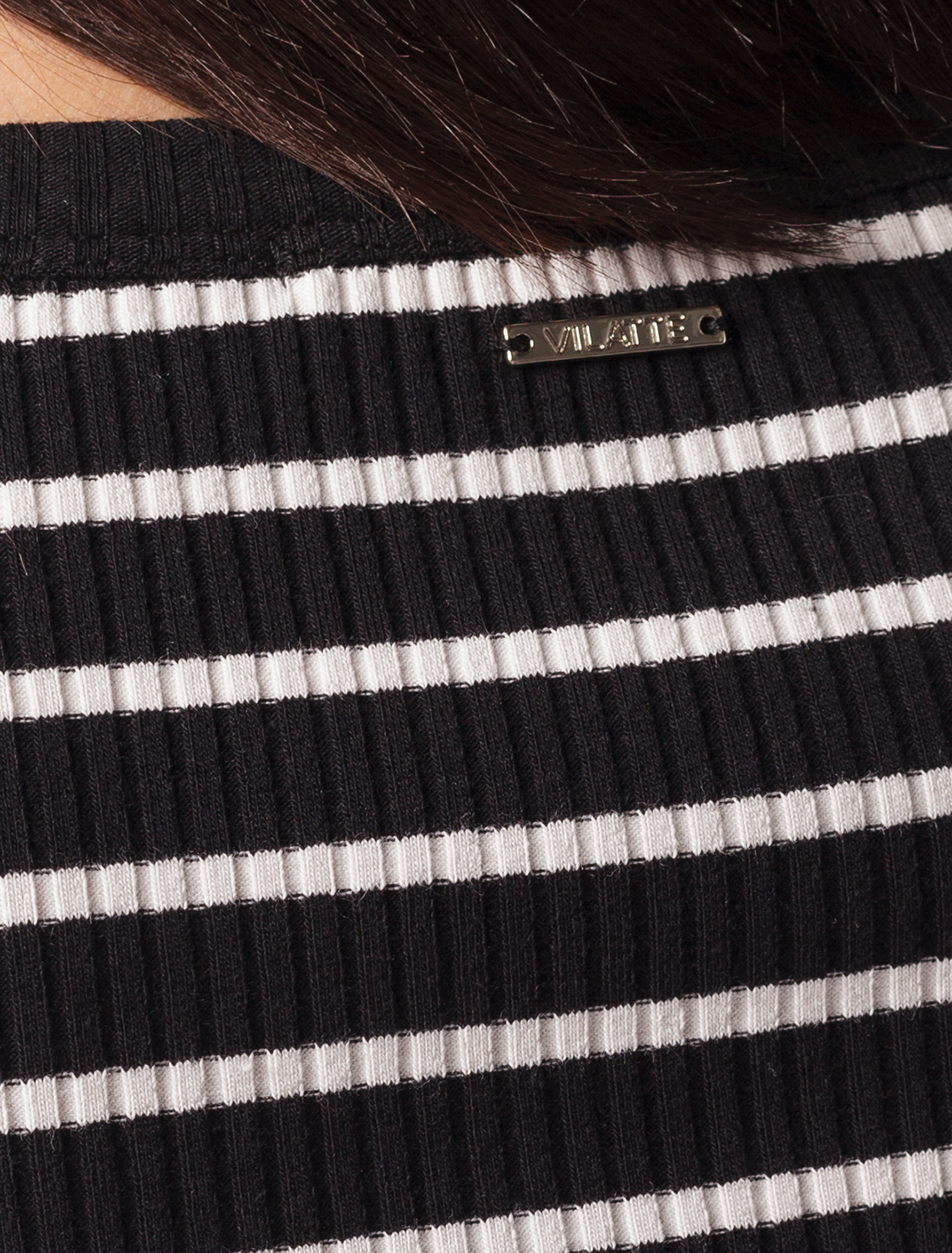 Ст.цена 1490р Лонгслив из трикотажа в широкий рубчик D49.984 черно-белый