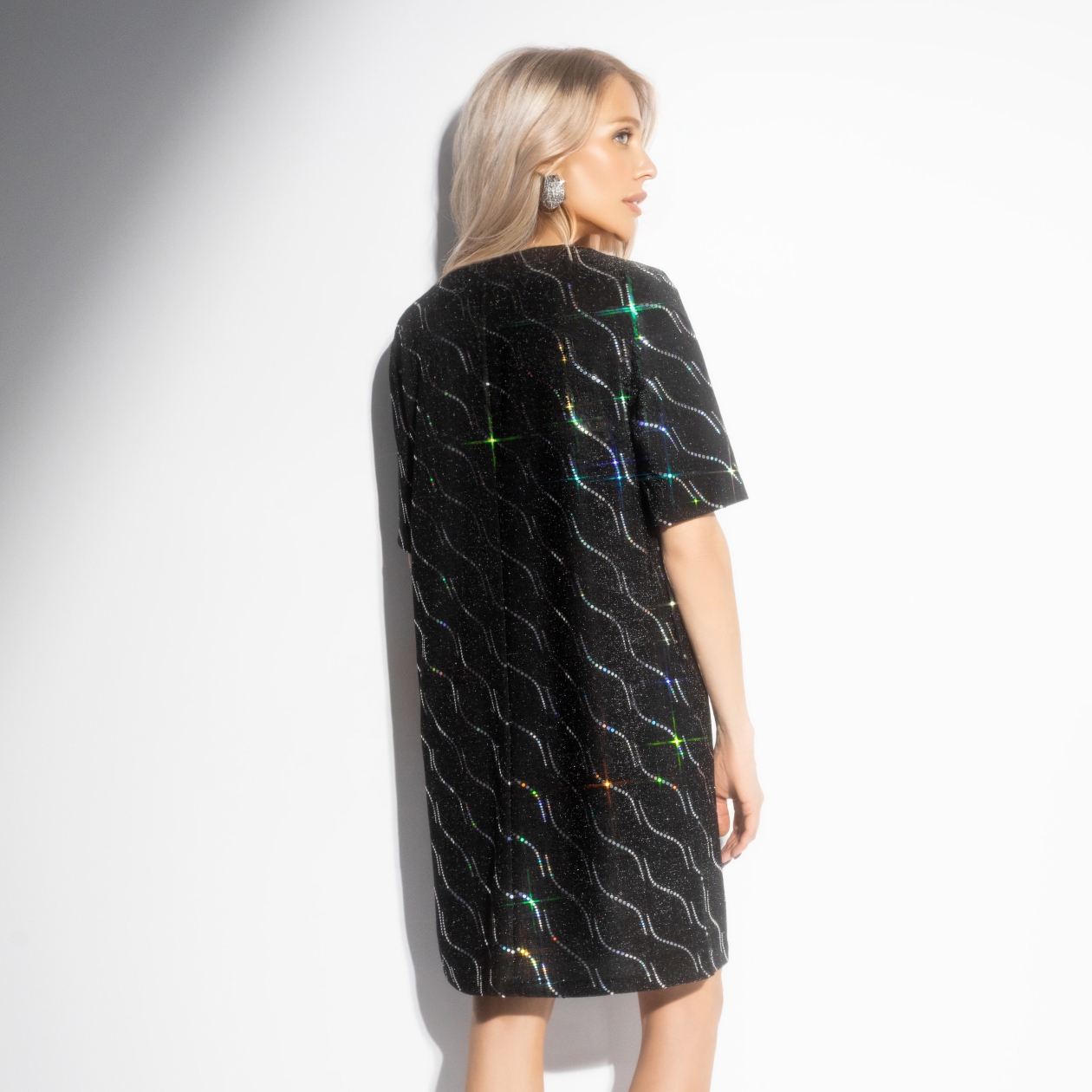 Говорят, нити судьбы могут сплестись в самые красивые узоры, если позволить себе поверить в лучшее. В этом платье ЧАРУТТИ каждая блестящая линия ‒ знак того, что всё сложится так, как нужно тебе. Просто сделай шаг навстречу мечте, ведь Вселенная уже всё устроила! Платье свободного кроя с карманами и акцентным нарядным декором. Сияющий блеск на глубоком чёрном фоне. А ты готова впустить чудо в свои дни?