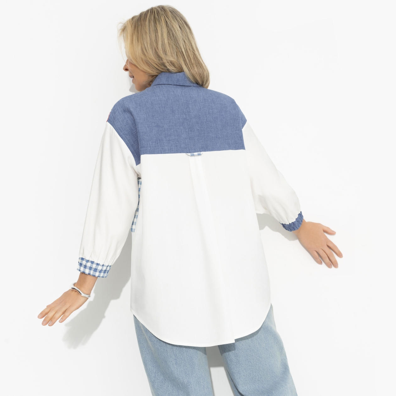 Рубашка комбинированная «Жемчужина образа (white)» — это воплощение элегантности и комфорта, идеально подходящее для женщин, стремящихся к совершенству в своём стиле. Воплощая образ «дочки маминой подруги», эта рубашка сочетает в себе классическую белизну и современные акценты. Свободный крой и асимметричный низ добавляют динамики и делают её подходящей как для повседневного, так и для делового гардероба. Укороченный рукав с широкой скрытой резинкой создаёт изысканный и завершённый вид. Эта рубашка белая женская станет жемчужиной вашего образа, добавляя нотку роскоши и утончённости в каждый ваш день.