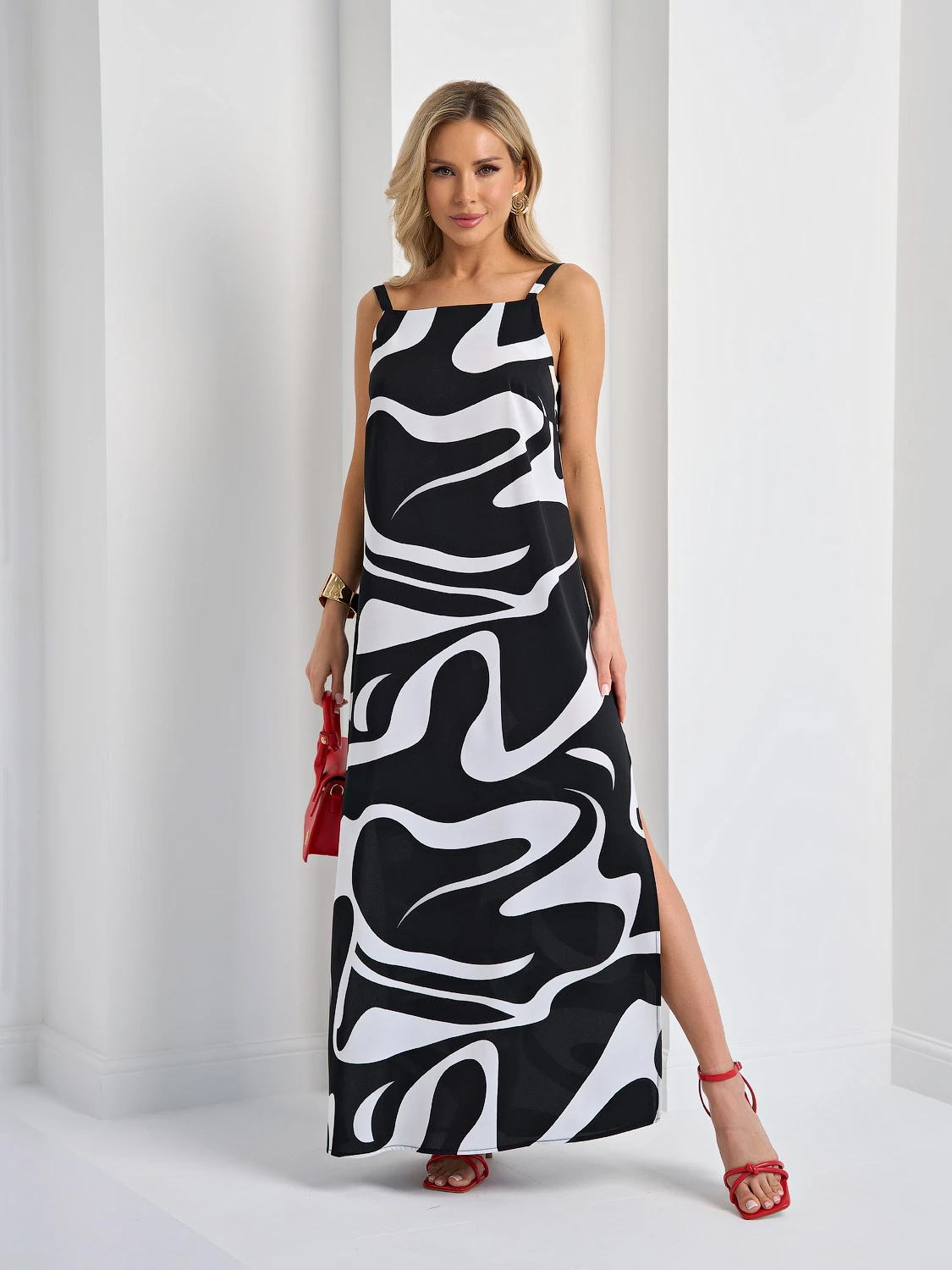 Сарафан прямого кроя на бретелях.