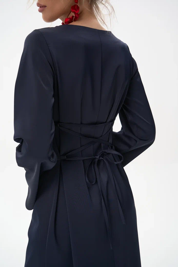 Лаконичный силуэт, мягкое прилегание по фигуре. Сзади предусмотрены завязки, позволяющие регулировать талию и посадку. Лёгкая текучая фактура подчёркивает движение и даёт комфорт в носке. Подходит для базовых и вечерних образов.
