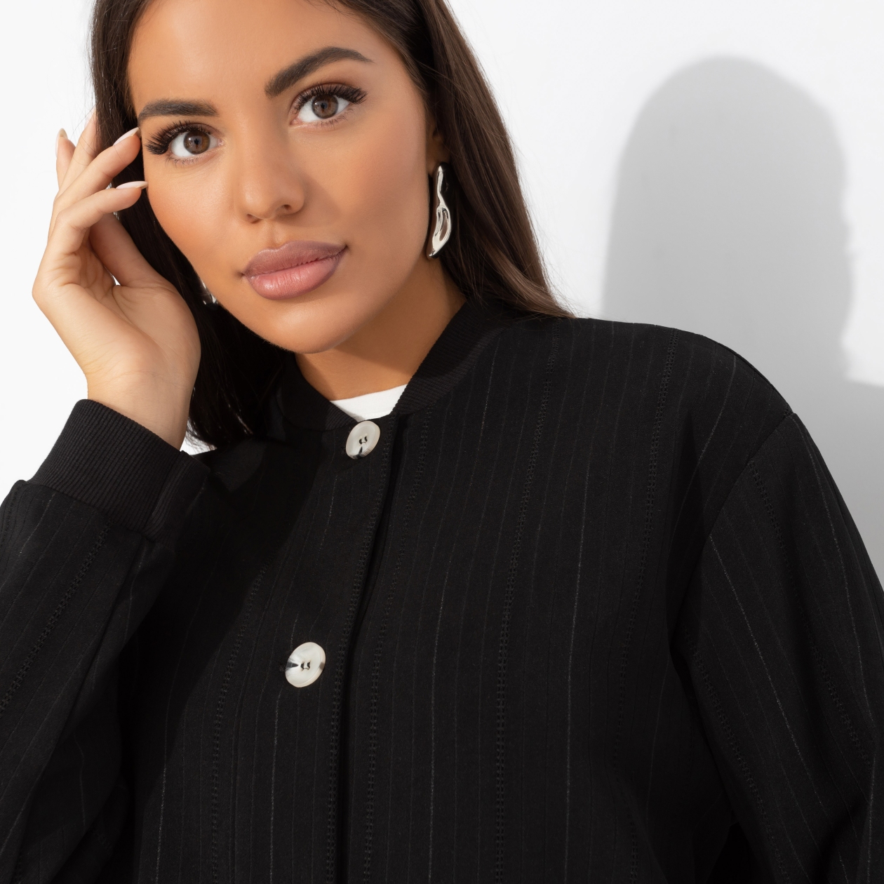 Бомбер ЧАРУТТИ – свободный, дерзкий, с намёком на уличный шик, будто бросает вызов обыденности. Он не просит внимания. Он его забирает. Черный бомбер, который требует не скромности, а аплодисментов. Бомбер свободного кроя с карманами.